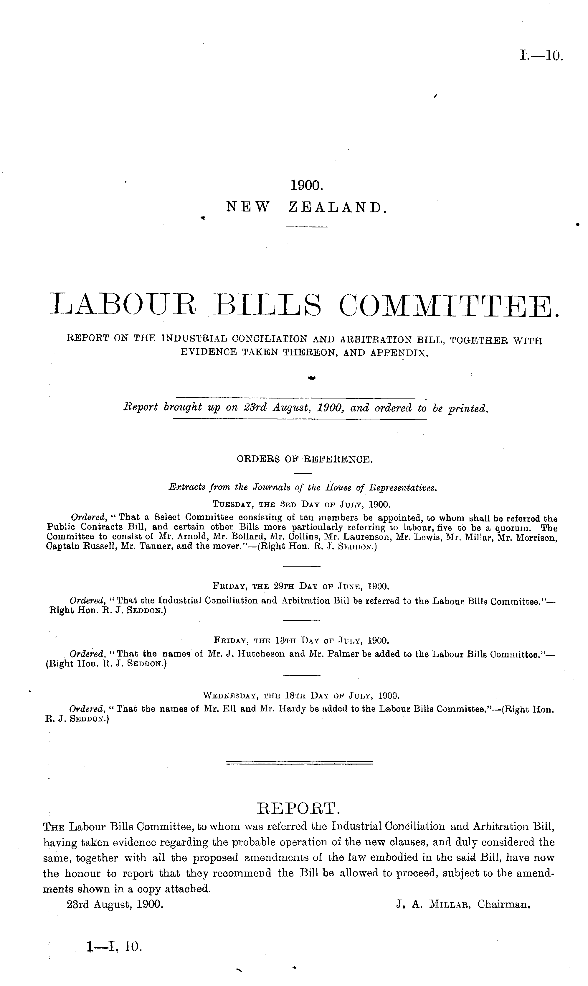 . ' Friday, the 13th Day of July, 1900. Ordered, "That the names of Mr. J. Hutcheson and Mr. Palmer be added to the Labour Bills Committee."— (Right Hon. R. J. Seddon.)