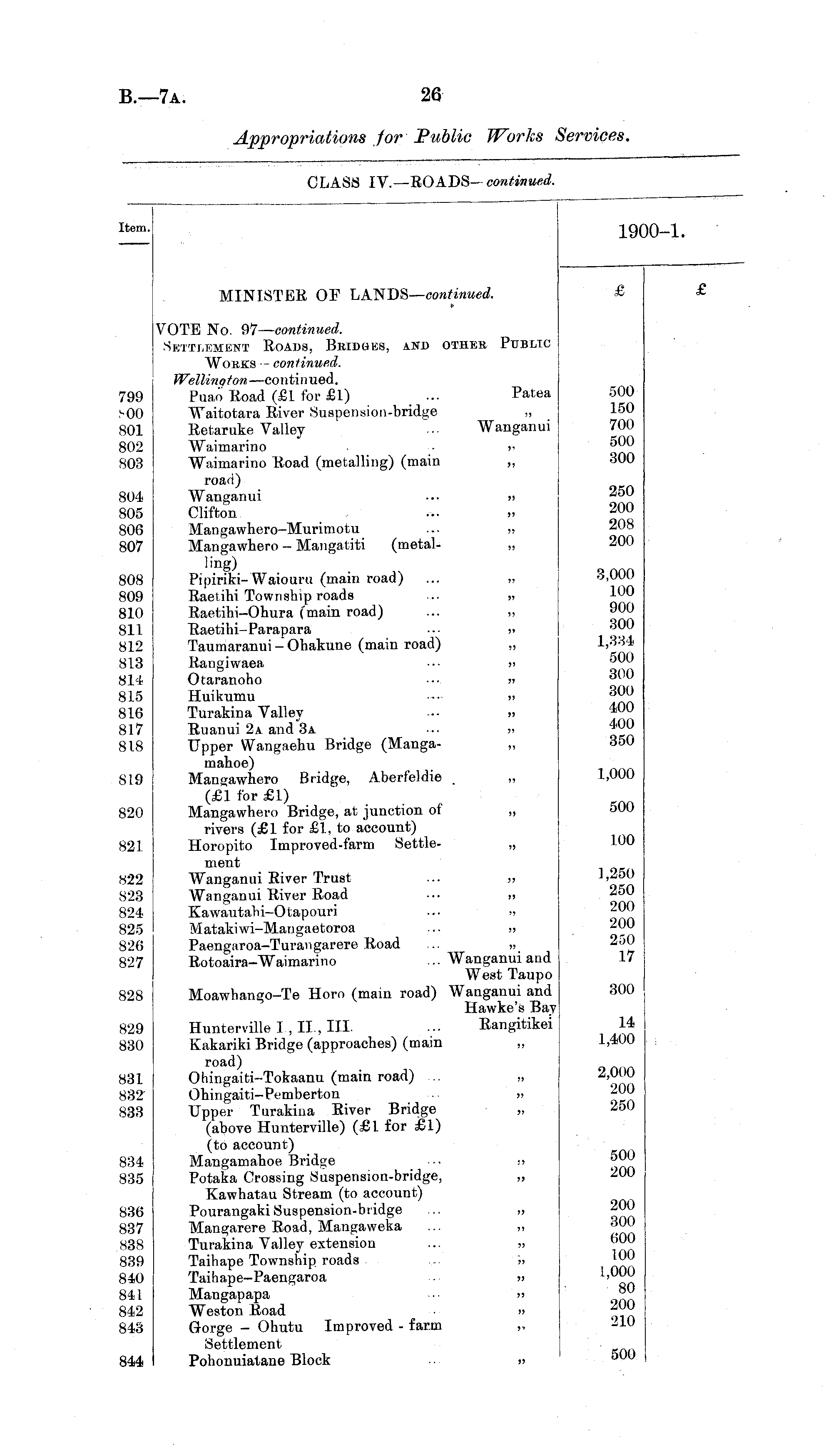 !tem. 19< 10-1. MINISTER OF LAlfDS— continued. £ 799 -00 301 302 303 304 305 306 307 308 309 310 311 312 313 314 315 316 317 318 319 320 321 VOTE No. 97— continued. Settlement Roads, Bbidgks, and other Public Wobks - continued. Wellington —continued. Puao Road (£1 for £l) ... Patea Waitotara River Suspension-bridge „ Retaruke Valley ... Wanganui Waimarino . • j> Waimarino Road (metalliiig) (main ,, road) Wanganui ■•• » Clifton ••• i' Mangawhero-Murimotu ... » Mangawhero - Mangatiti (metal- ,, 1 ing) Pipiriki- Waiouru (main road) ... „ Raetihi Township roads ... „ Raetihi-Ohura ('main road) ... ,, Raetihi-Parapara ■-■ >• Taumaranui - Ohakune (main road) „ Rangiwaea •-■ » Otaranoho ■-• » Huikumu » Turakina Valley •- » Ruanui 2a and 3a ... » Upper Wangaehu Bridge (Mangamahoe) Mancawhero Bridge, Aberfeldie „ (£1 for £1) Mangawhero Bridge, at junction of „ rivers (£1 for £1, to account) Horopito Improved-farm Settle- „ ment Wanganui River Trust ... „ Wanganui River Road •■• » Kawautahi-Otapouri ... >, Matakiwi-Mangaetoroa ... „ Paengaroa-Turangarere Road ... „ Rotoaira-Waimarino .. Wanganui and West Taupo Moawhango-Te Horo (main road) Wanganui and Hawke's Bay Hunterville I , II , III. ... Rangitikei Kakariki Bridge (approaches) (main ,, road) Ohingaiti-Tokaanu (main road) ... „ Ohingaiti-Pemberton » Upper Turakina River Bridge „ (above Hunterville) (£1 for £1) (to account) Mangamahoe Bridge -■ -.> Potaka Crossing Suspension-bridge, ,, Kawhatau Stream (to account) Pourangaki Suspension-bridge ... ,, Mangarere Road, Mangaweka ... ,, Turakina Valley extension ... >, Taihape Township roads ... » Taiba.pe-Paengaroa • » Mangapapa •• >> Weston Road • » Gorge - Ohutu Improved - farm ,» Settlement Pohonuiatane Block ■ ■ » 500 150 700 500 300 250 200 208 200 3.000 100 900 300 1,334 500 300 300 400 400 350 1,000 500 100 322 323 324 325 326 327 ],250 250 200 200 250 17 328 300 329 330 14 1,400 331 332 333 2,000 200 250 834 835 500 200 836 837 S38 839 840 841 842 843 200 300 600 100 1,000 80 200 210 844 500