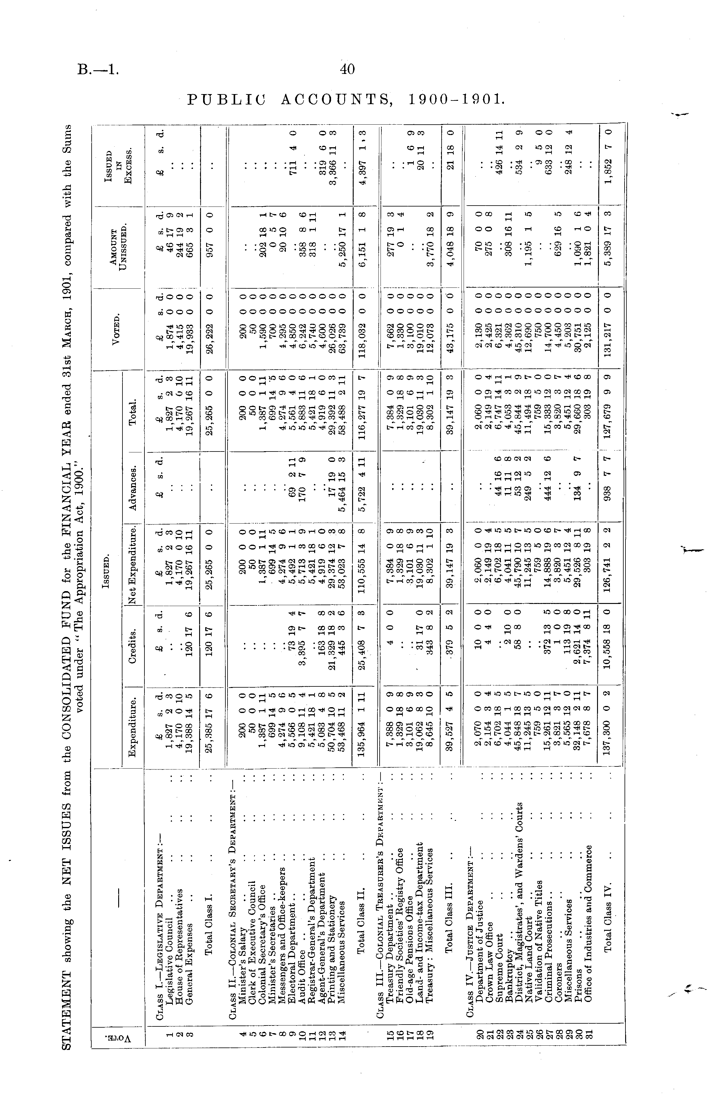 STATEMENT showing the NET ISSUES from the CONSOLIDATED FUND for the FINANCIAL YEAR ended 31st March, 1901, compared with the Sums voted under "The Appropriation Act, 1900."