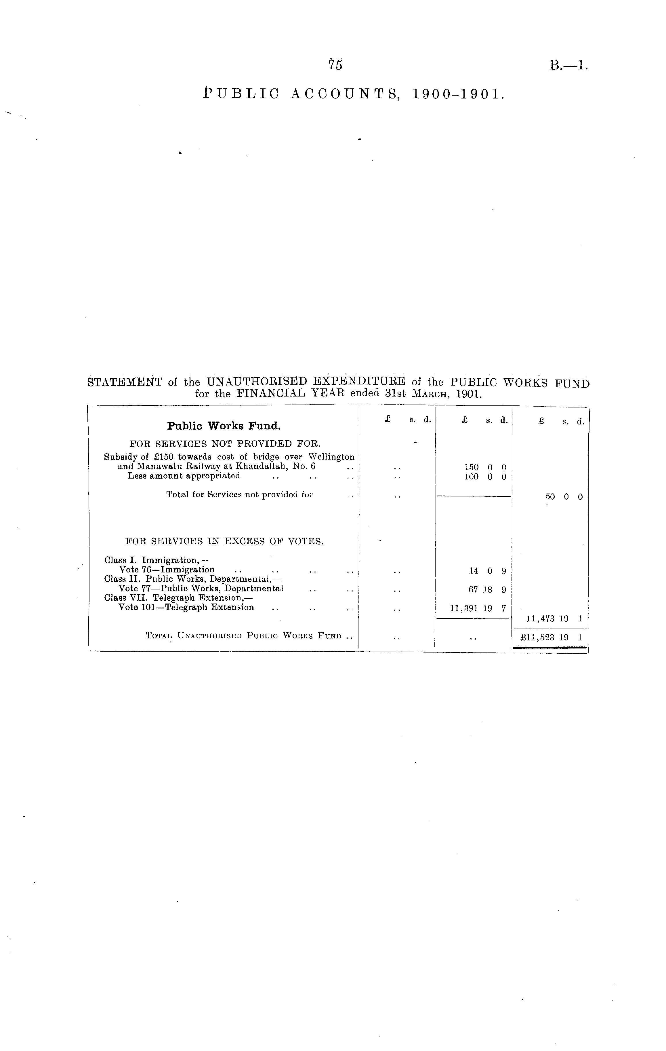STATEMENT of the UNAUTHORISED EXPENDITURE of the PUBLIC WORKS FUND for the FINANCIAL YEAR ended 31st March, 1901.