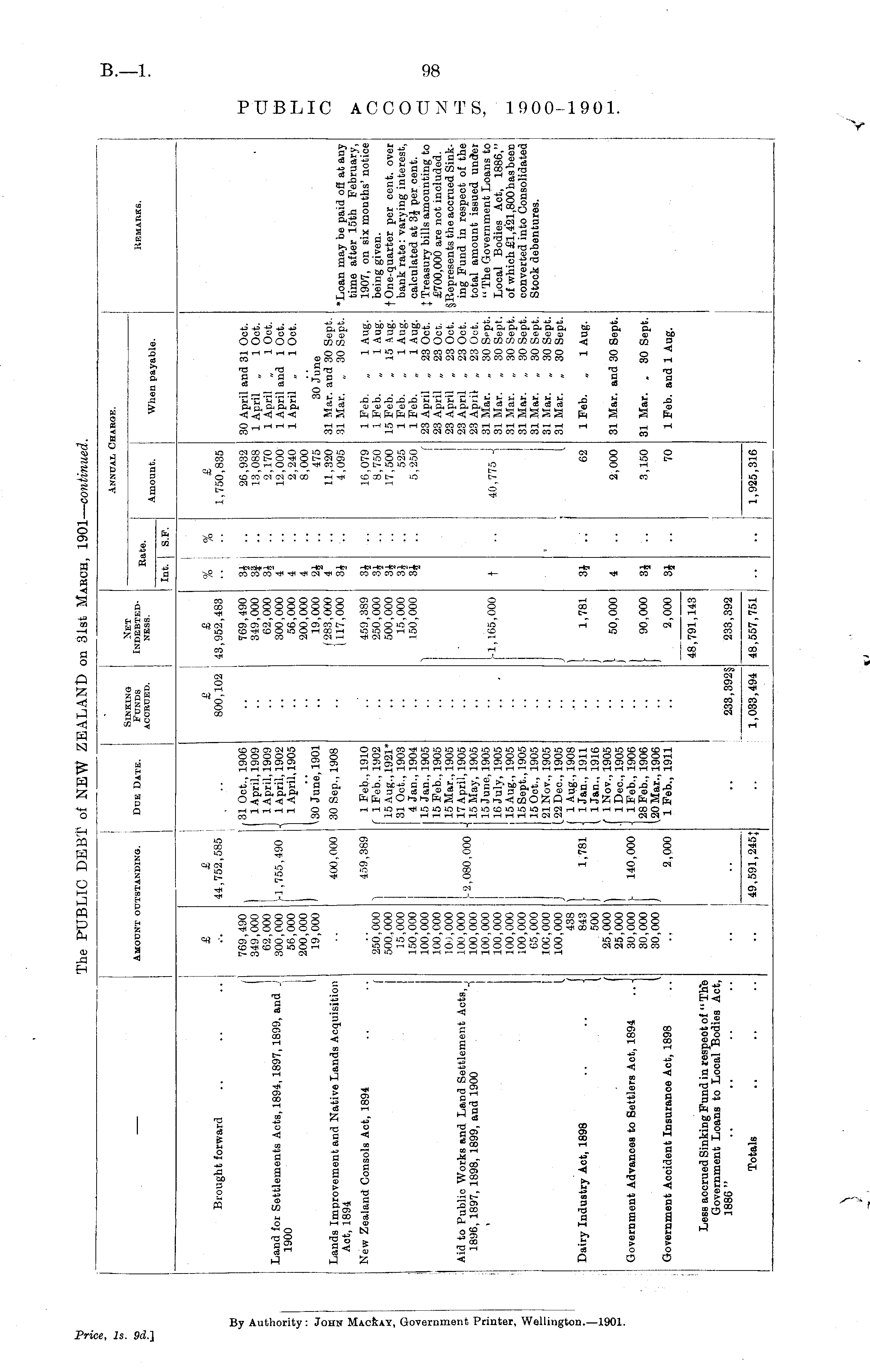 The PUBLIC DEBT of NEW ZEALAND on 31st March, 1901— continued.
