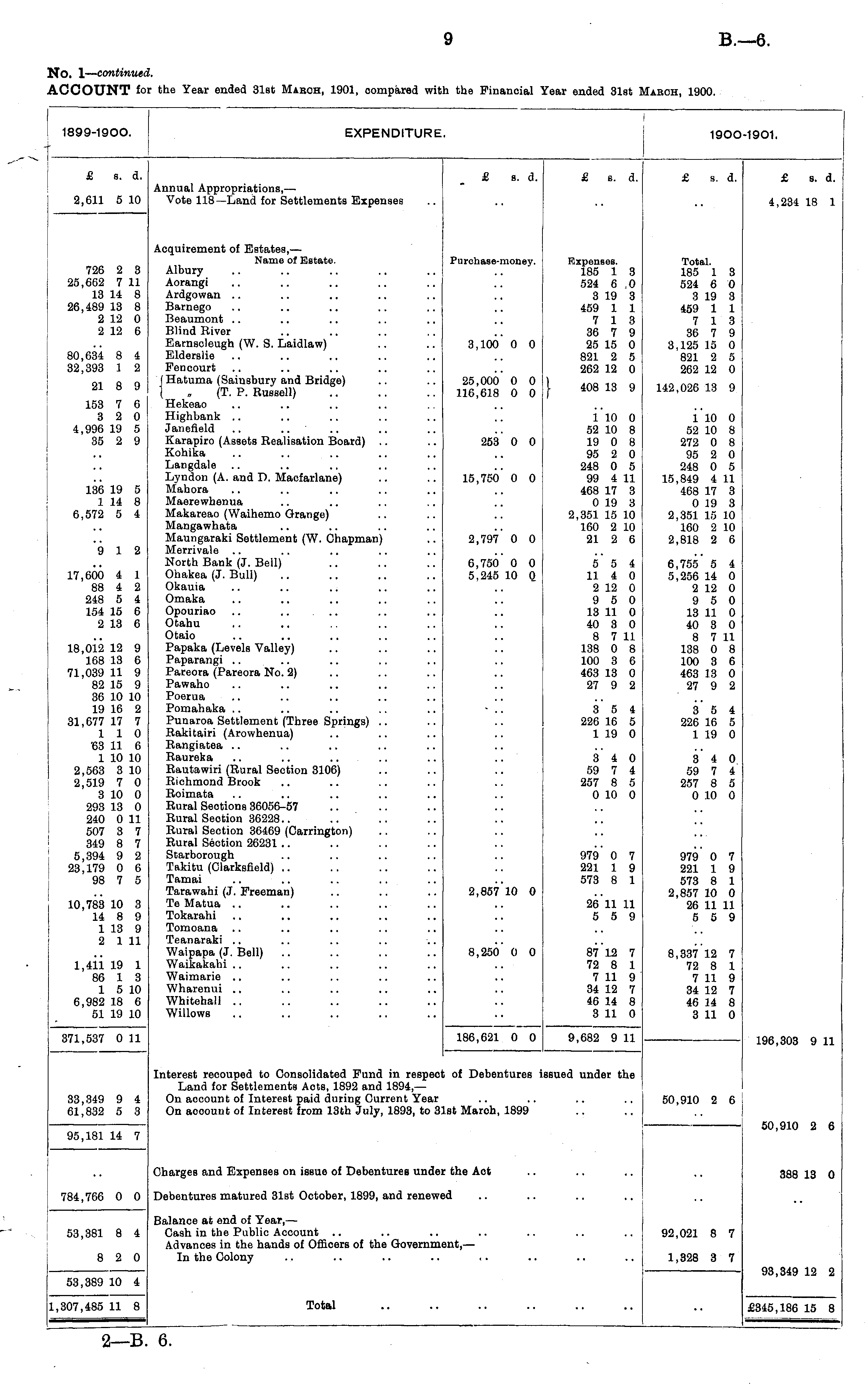 No. 1— continued. ACCOUNT for the Year ended 31st March, 1901, compared with the Financial Year ended 31st March, 1900.