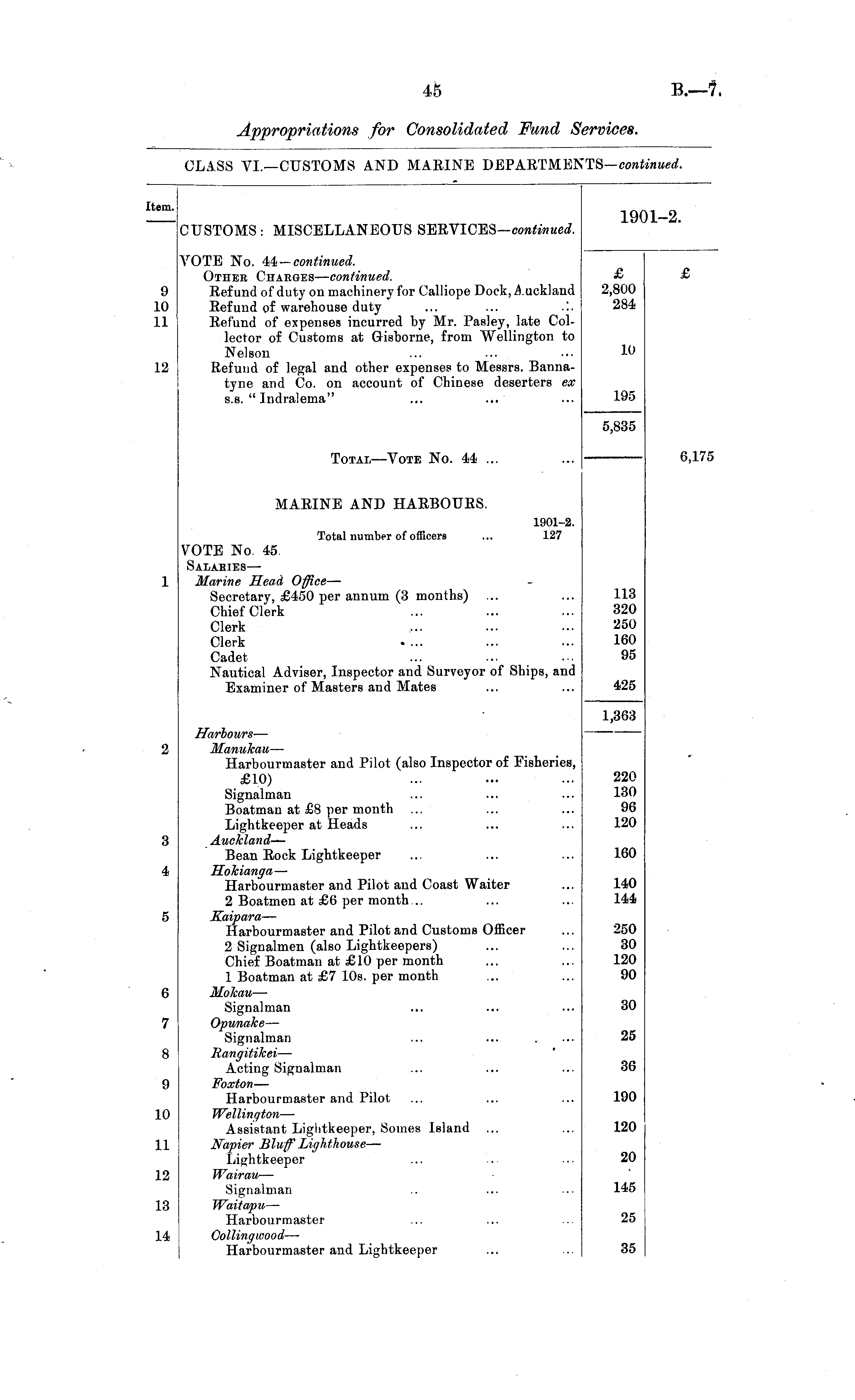 CLASS VI.—CUSTOMS AND MARINE DEPARTMENTS— continued.