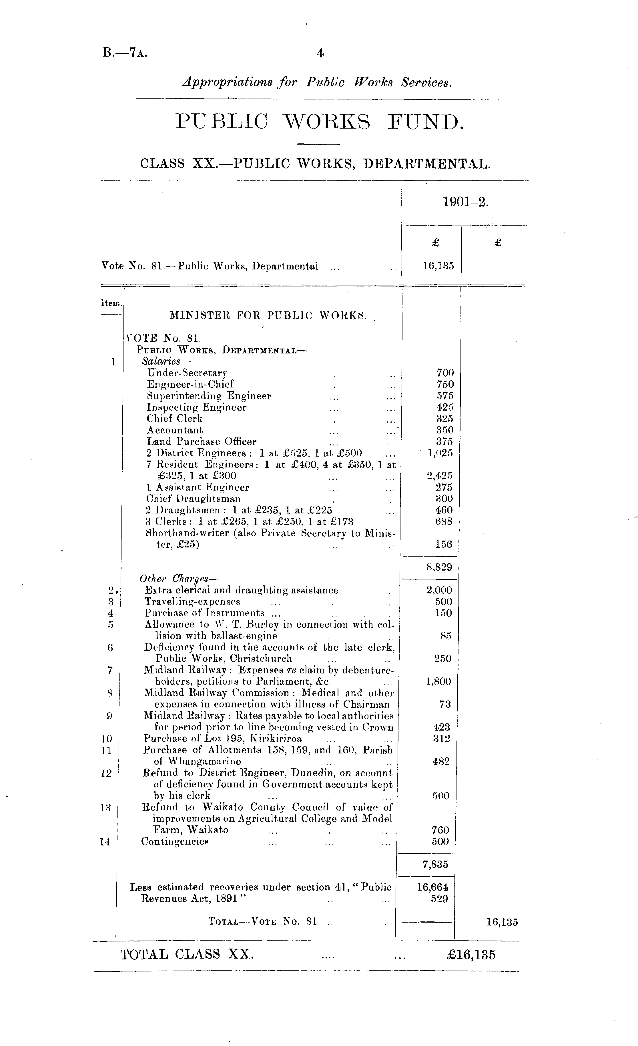 CLASS XX.—PUBLIC WORKS, DEPARTMENTAL.
