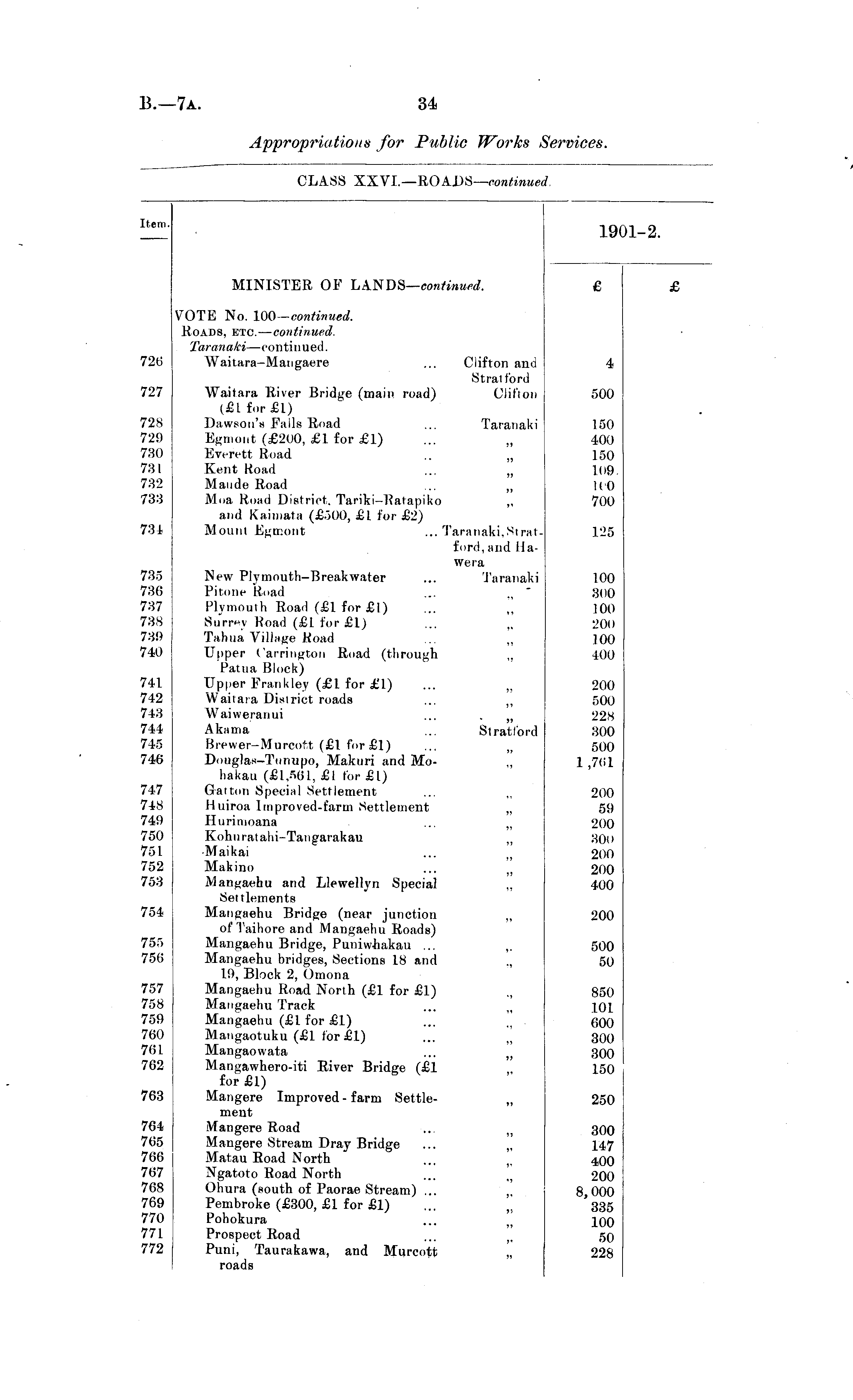 item. 19 1-2. MINISTER OF LANDS— continued. '26 '27 '28 29 '80 '81 '32 '33 VOTE No. 100— continued. Roads, etc. — continued. Taranaki —continued. Waitara-Mangaere ... Clifton and Stratford Waitara River Bridge (main road) Clifton (£l for£l) Dawson's Falls Road ... Taranaki Egmont (£200, £1 for £1) Everett Road .. „ Kent Road ... „ Maude Road ... ,, Moa Road District. Tariki-Ratapiko ,, and Kaimata (£500, £1 for £2) Mount Egmont ... Taranaki,Stratford, and Ha4 500 150 400 150 109. 1(0 700 '3 I 125 735 736 737 738 739 740 741 742 743 744 745 746 747 748 749 750 751 752 753 754 wera New Plymouth-Breakwater ... Taranaki Pitone Road Plymouth Road (£1 for £l) Surrey Road (£1 for £1) Tahua Village Road ... „ Upper Carrington Road (through ,, Patua Block) Upper Frankley (£1 for £1) ... „ Waitara District roads ... Waiweranui ... . Akama ... Stratford Brewer-Murcott (£1 for£l) Douglas-Tunupo, Makuri and Mo- „ hakau (£1,501, £l for £l) Gatton Special Settlement Huiroa Improved-farm Settlement „ Huriinoana Kohuratahi-Tangarakau „ ■Maikai Makino ... " n Mangaehu and Llewellyn Special Settlements Mangaehu Bridge (near junction of Taihore and Mangaehu Roads) Mangaehu Bridge, Puniwhakau ... ,. Mangaehu bridges, Sections 18 and , 19, Block 2, Omona Mangaehu Road North (£1 for £1) Mangaehu Track Mangaehu (£1 for £1) ... " Mangaotuku (£1 for £1) ... J Mangaowata Mangawhero-iti River Bridge (£1 for £1) Mangere Improved - farm Settle- „ ment Mangere Road Mangere Stream Dray Bridge ... „ Matau Road North ' ... (i Ngatoto Road North ... ', Ohura (south of Paorae Stream) ... , Pembroke (£300, £1 for £1) Pohokura Prospect Road Puni, Taurakawa, and Murcott „ 100 300 100 200 100 400 200 500 228 300 500 1 ,761 200 59 200 30(1 200 200 400 200 755 756 500 50 757 758 759 760 761 762 850 101 600 300 300 150 763 250 764 765 766 767 768 769 770 771 772 300 147 400 200 8,000 335 100 50 228 roads