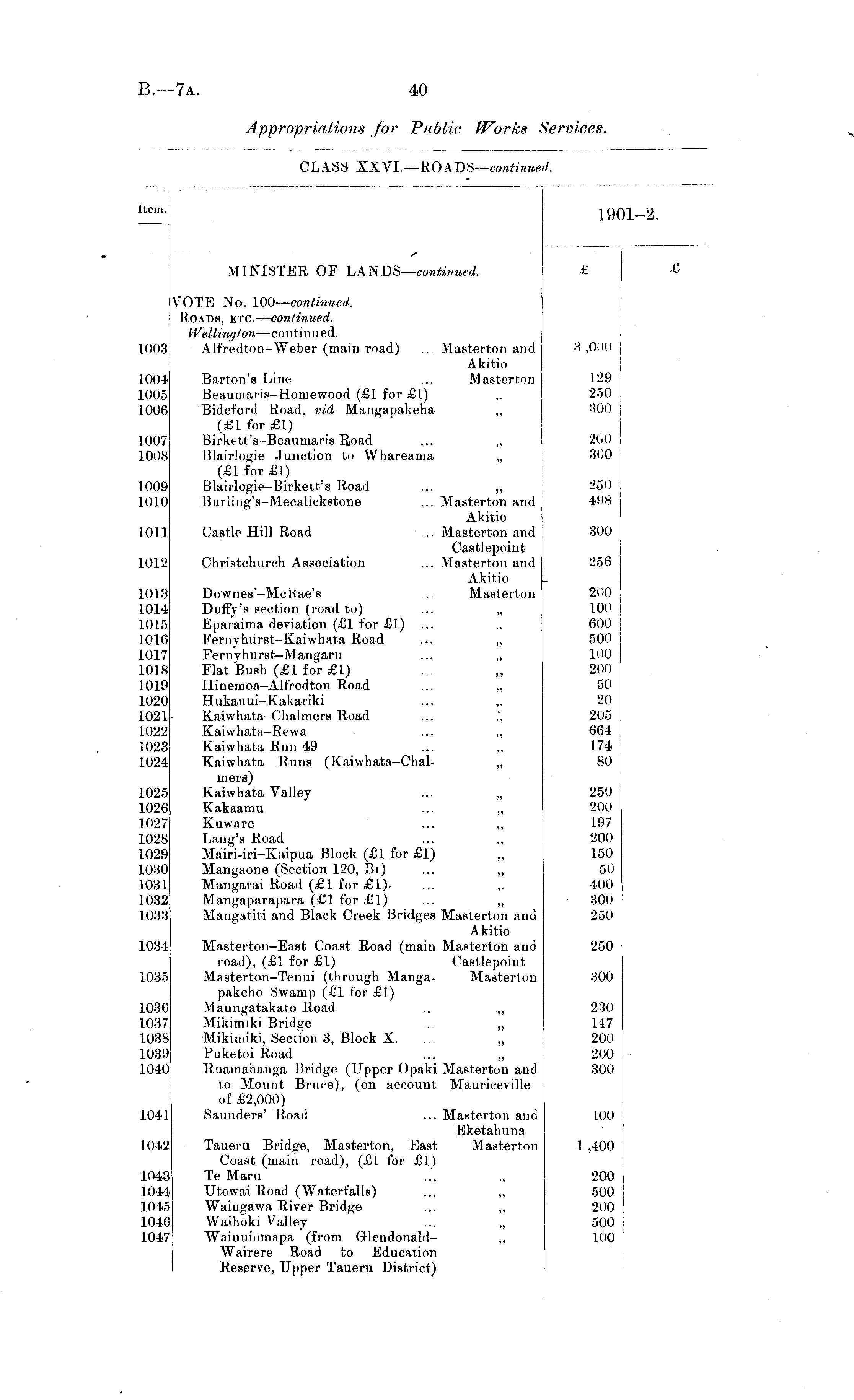 CLASS XXVI.—ROADS— continued.