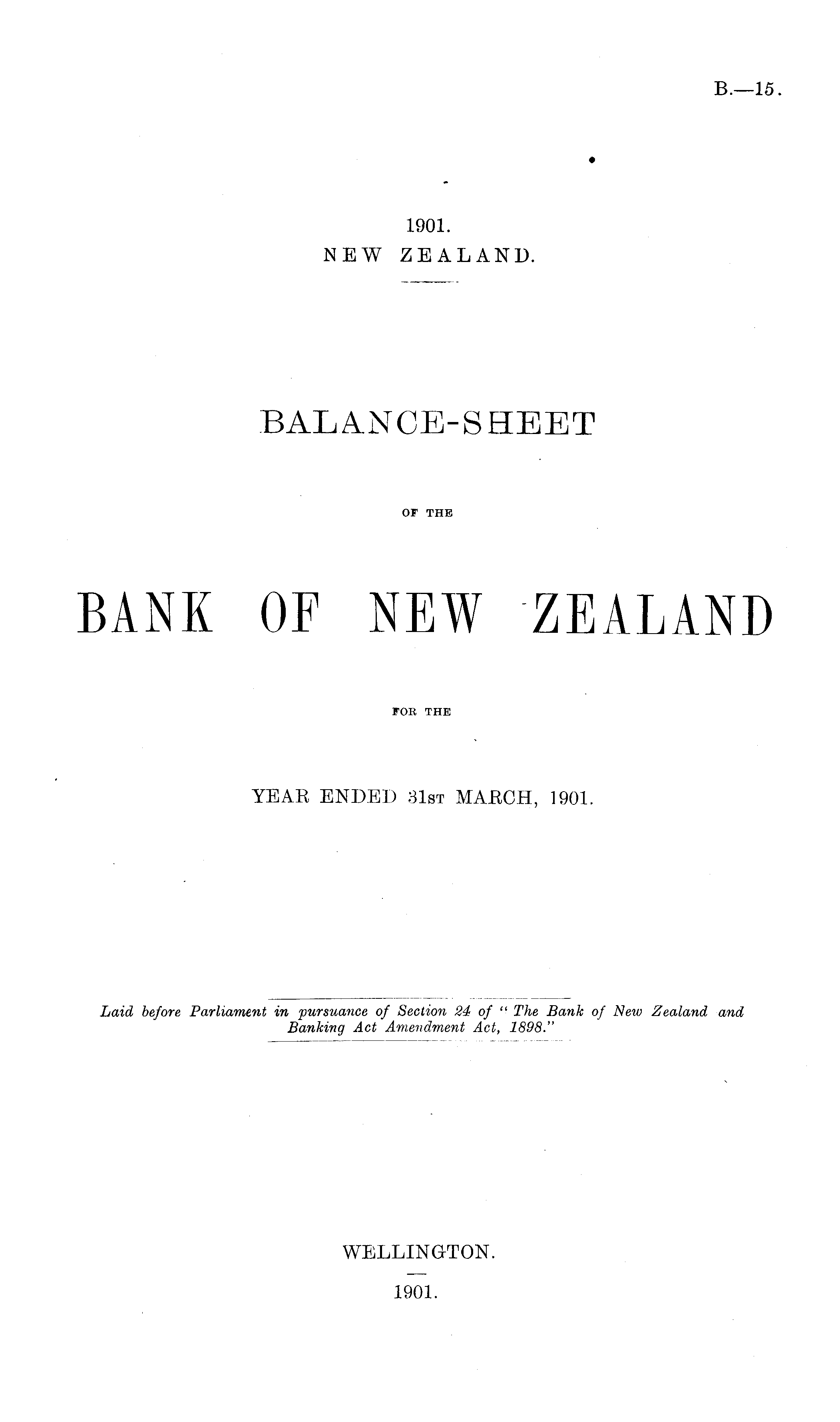 BALANCE-SHEET OF THE BANK OF NEW ZEALAND FOR THE YEAR ENDED 31st MARCH, 1901.