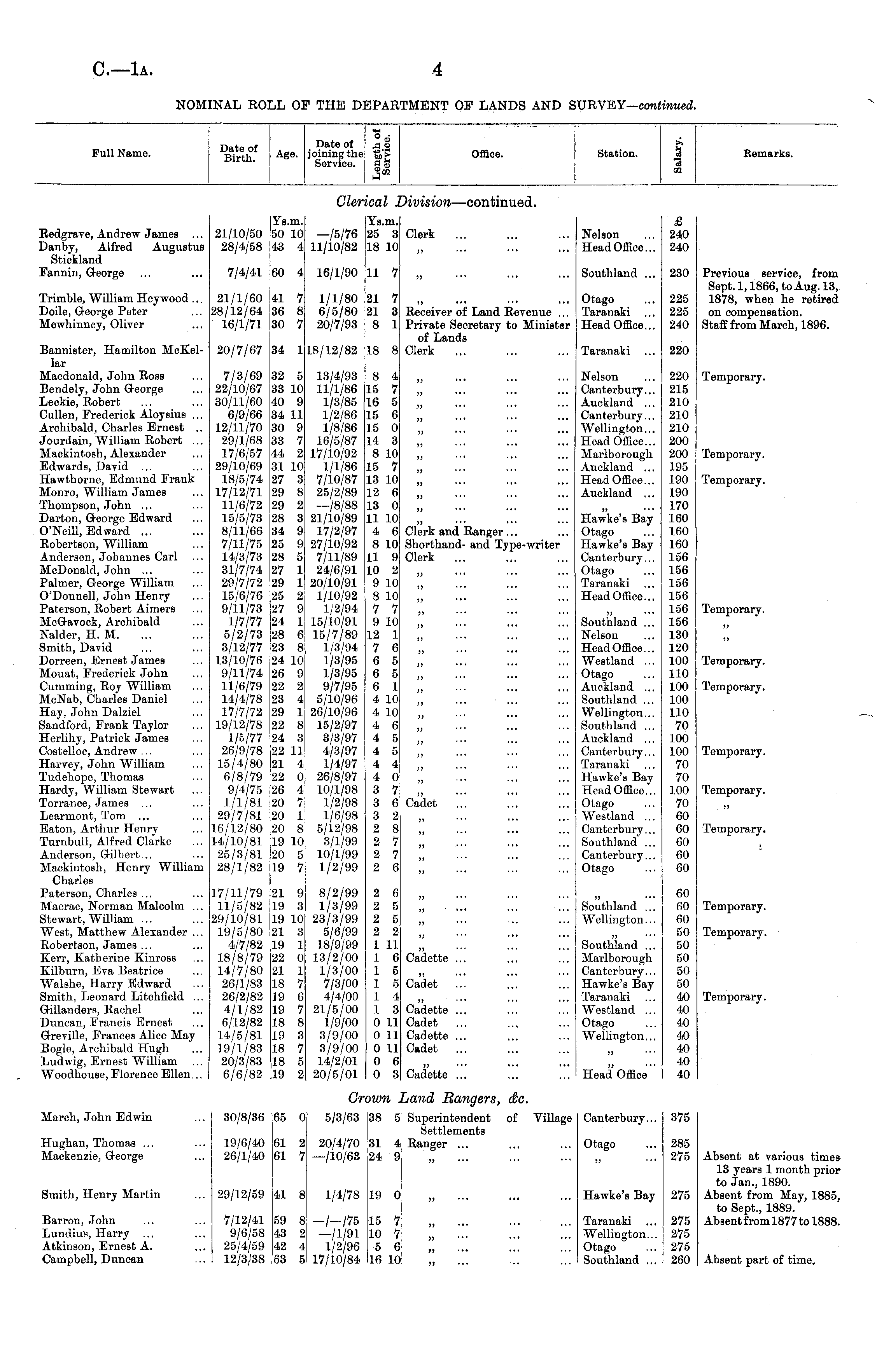 NOMINAL ROLL OF THE DEPARTMENT OF LANDS AND SURVEY— continued.