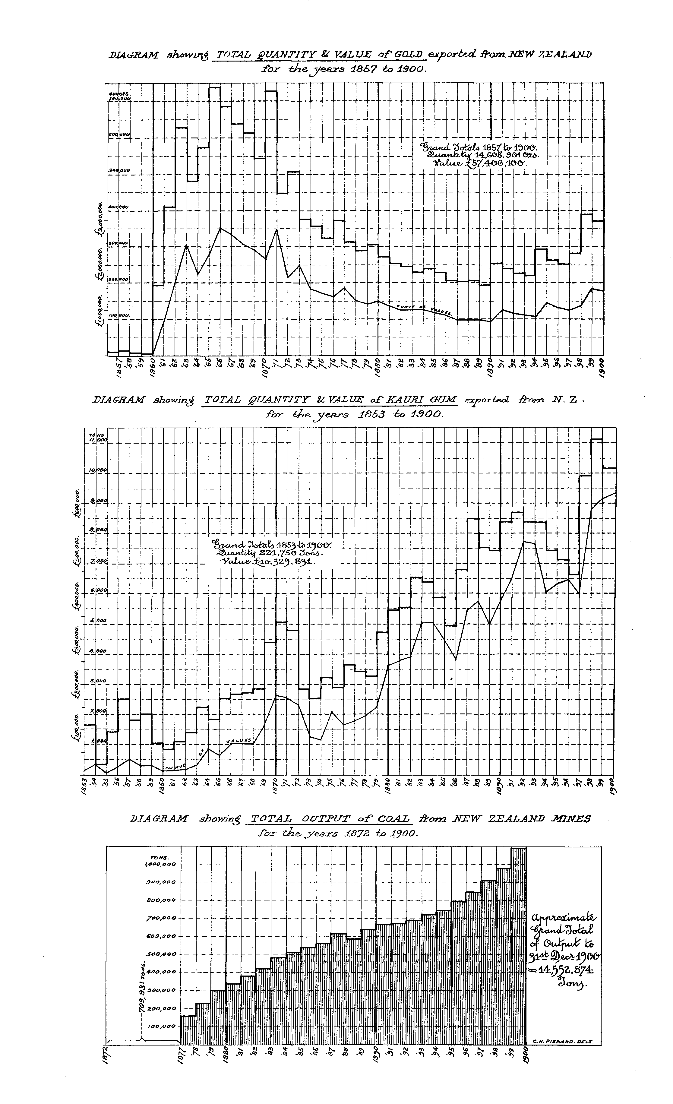 DIAGRAM showing TOTAL QUANTITY & VALUE of GOLD exported from NEW ZEALAND for the years 1857 to 1900.