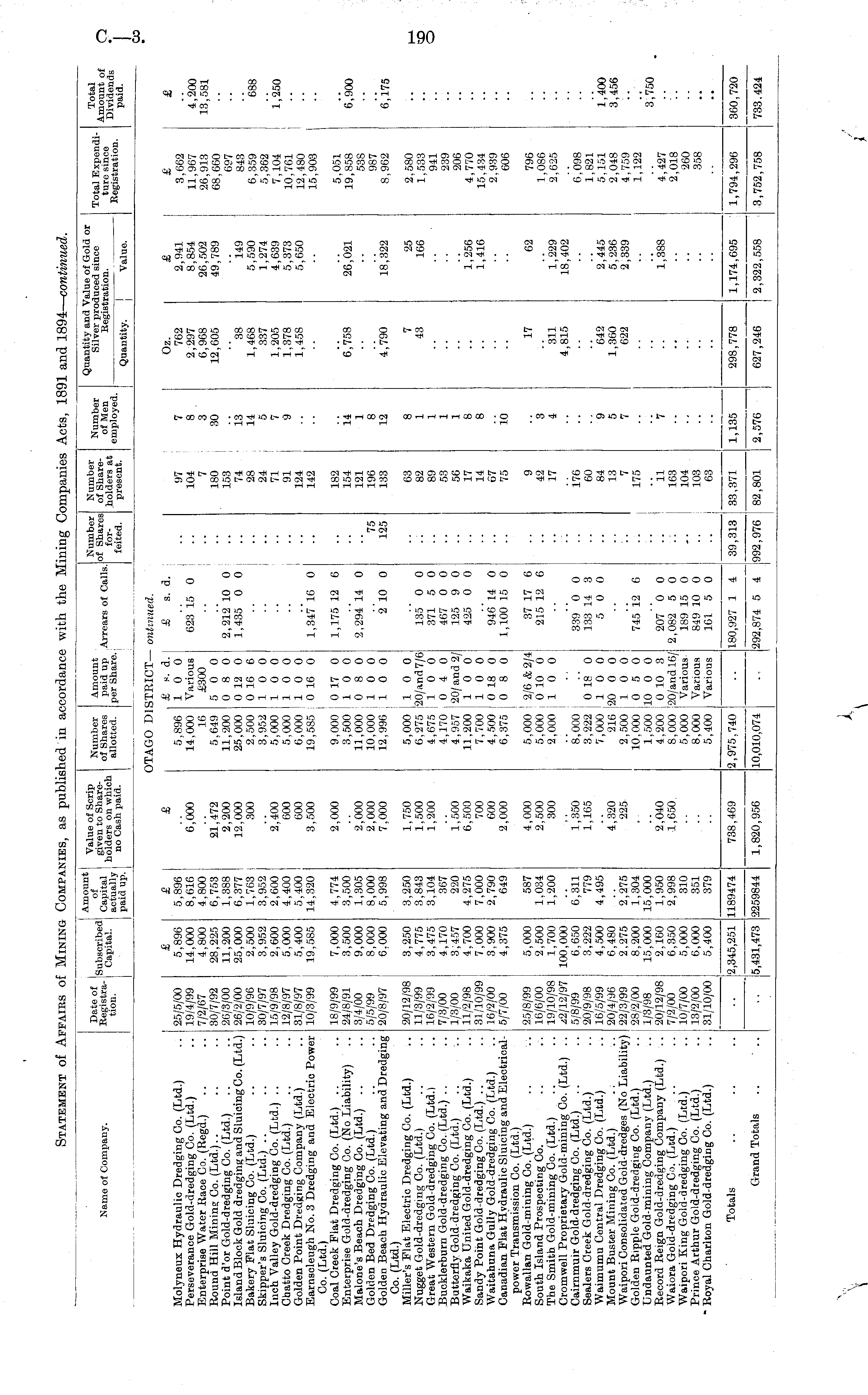 Statement of Affairs of Mining Companies, as published in accordance with the Mining Companies Acts, 1891 and 1894 — continued.