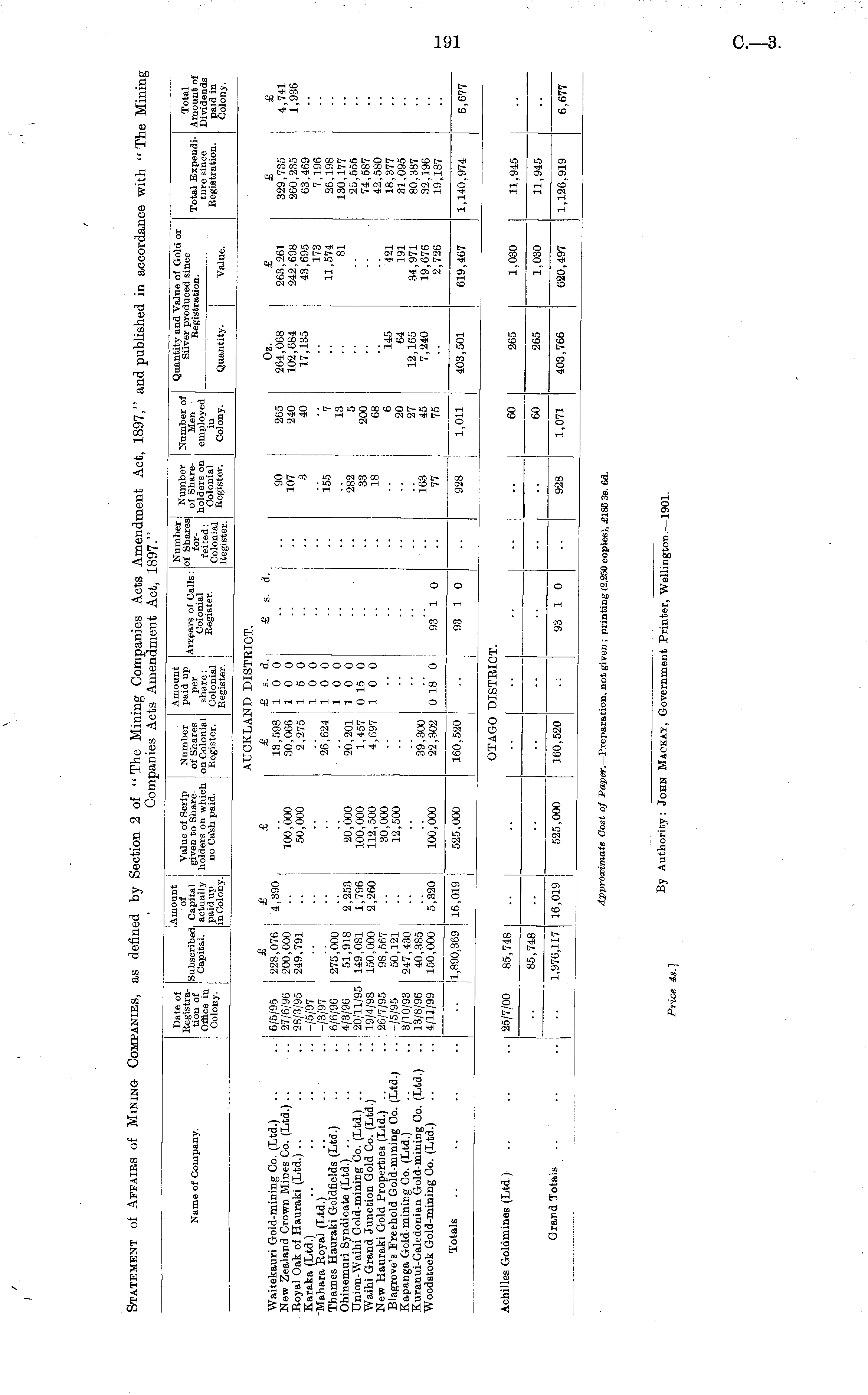 Statement of Affairs of Mining Companies, as defined by Section 2 of "The Mining Companies Acts Amendment Act, 1897," and published in accordance with " The Mining Companies Acts Amendment Act, 1897."
