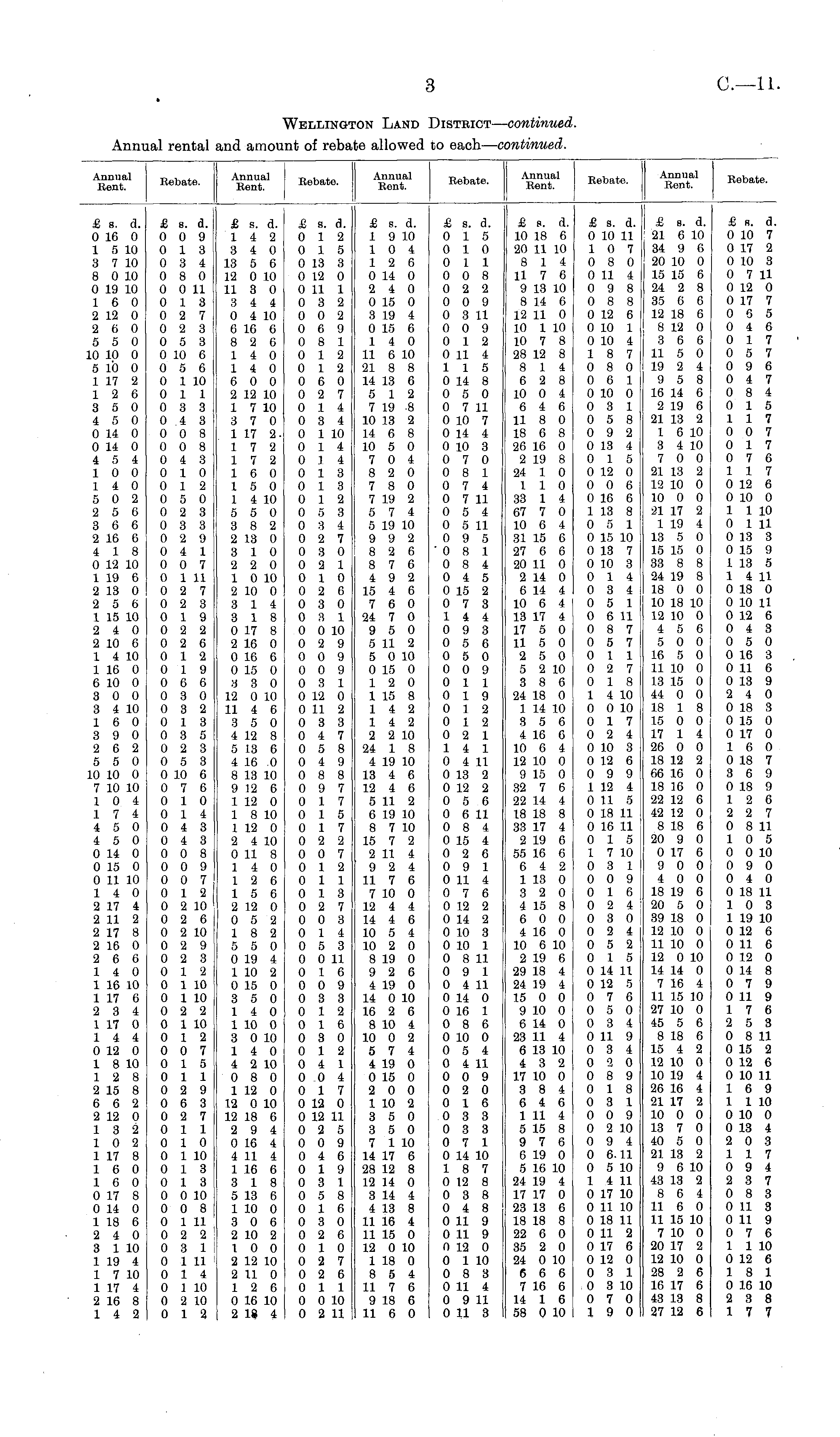 Wellington Land District— continued. Annual rental and amount of rebate allowed to each — continued.