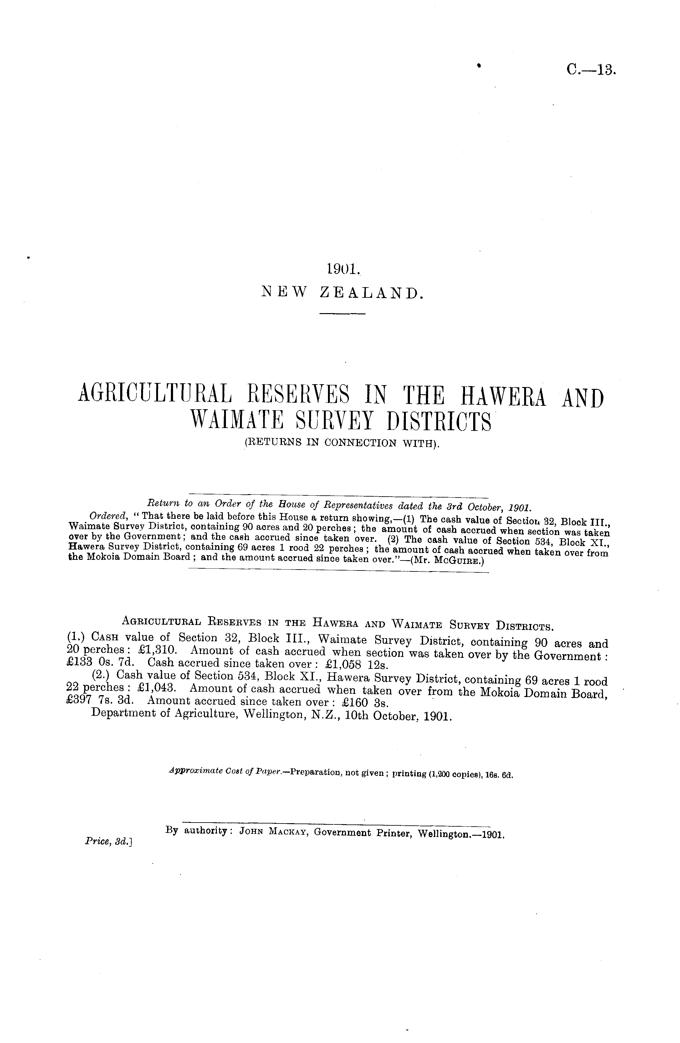 By authority : John Mackay, Government Printer, Wellington —1901 Price, 3d.]