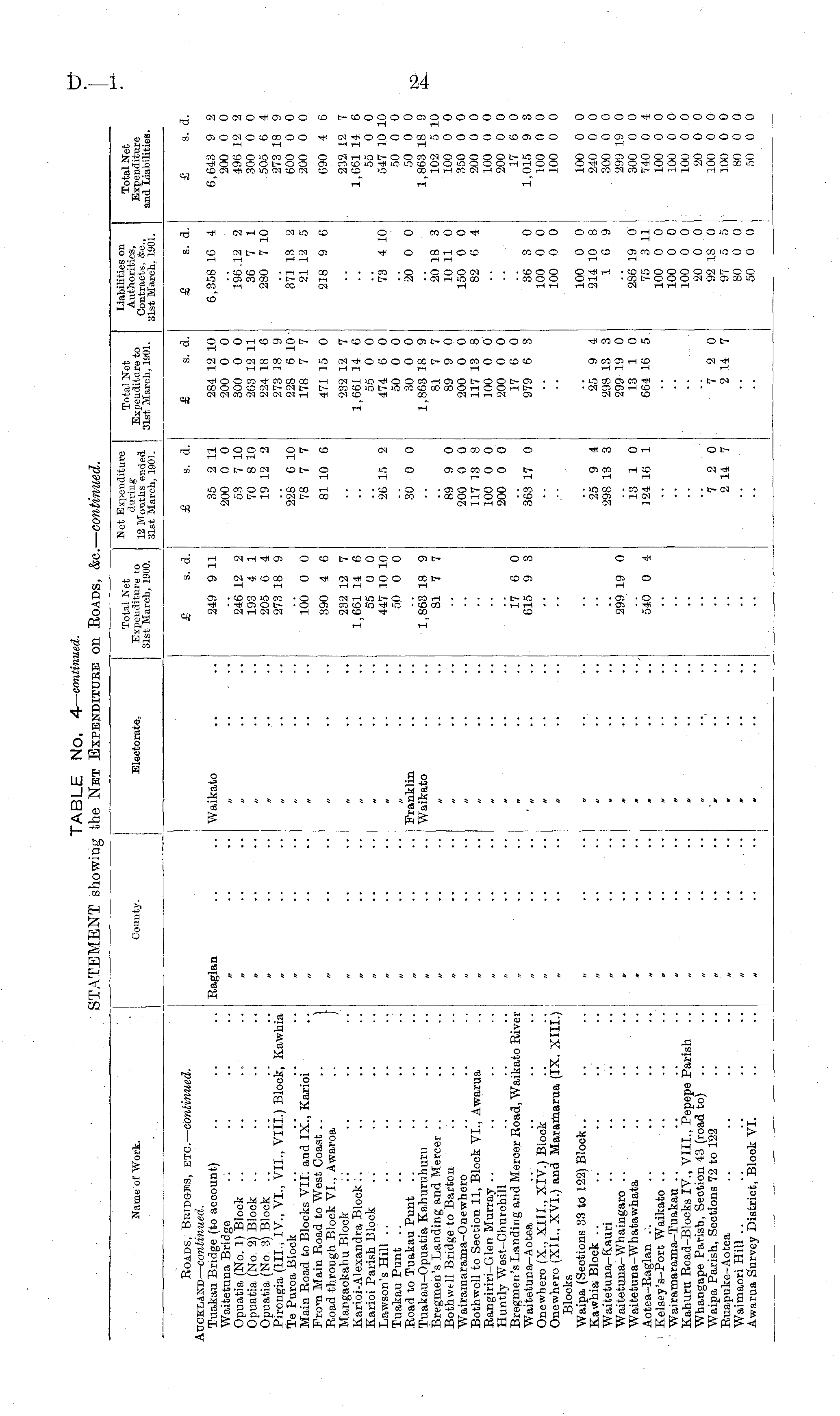 TABLE No. 4— continued. STATEMENT showing the Net Expenditure on Roads, &c.— continued.