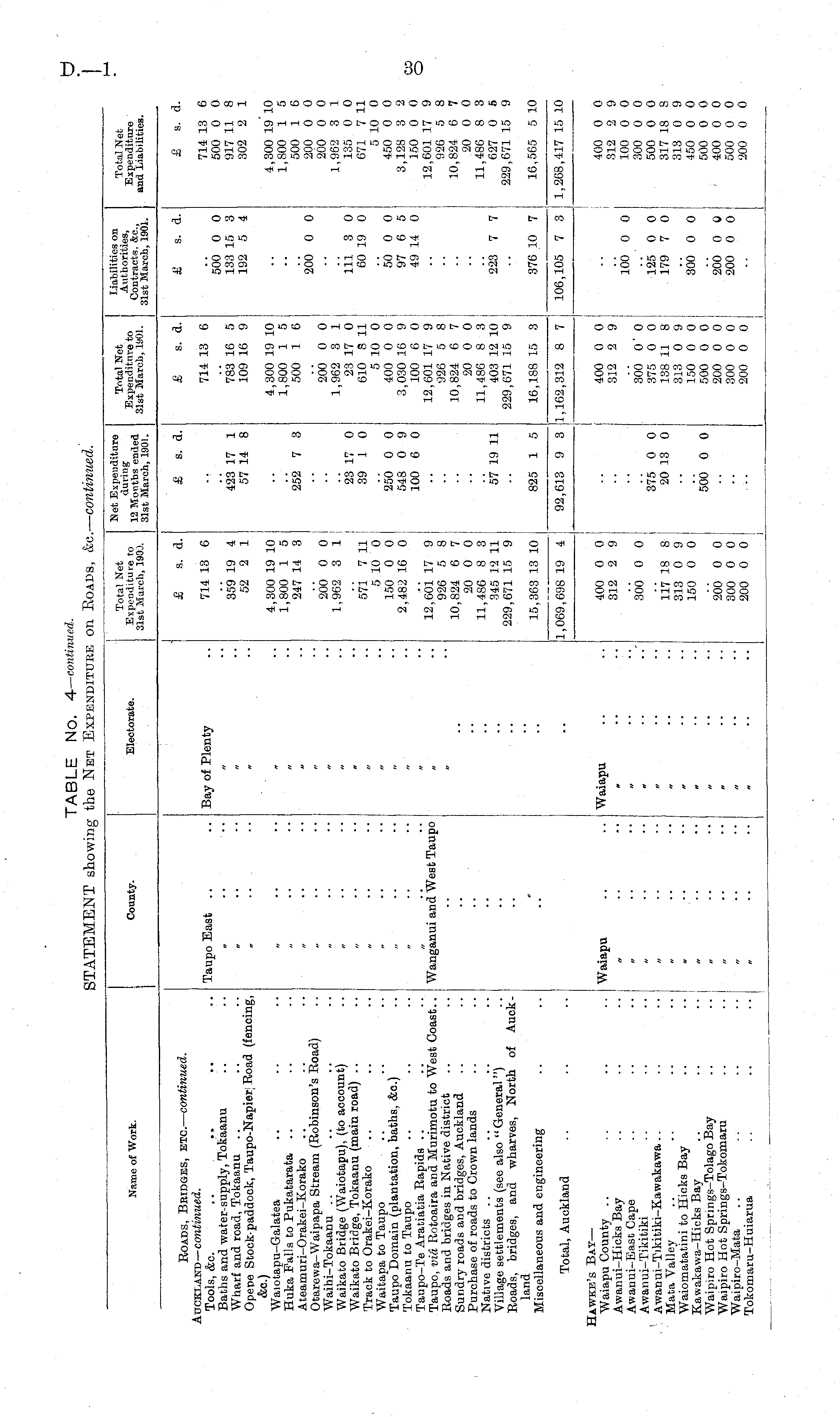 TABLE No. 4 — continued. STATEMENT showing the Net Expenditure on Roads, &c.— continued.