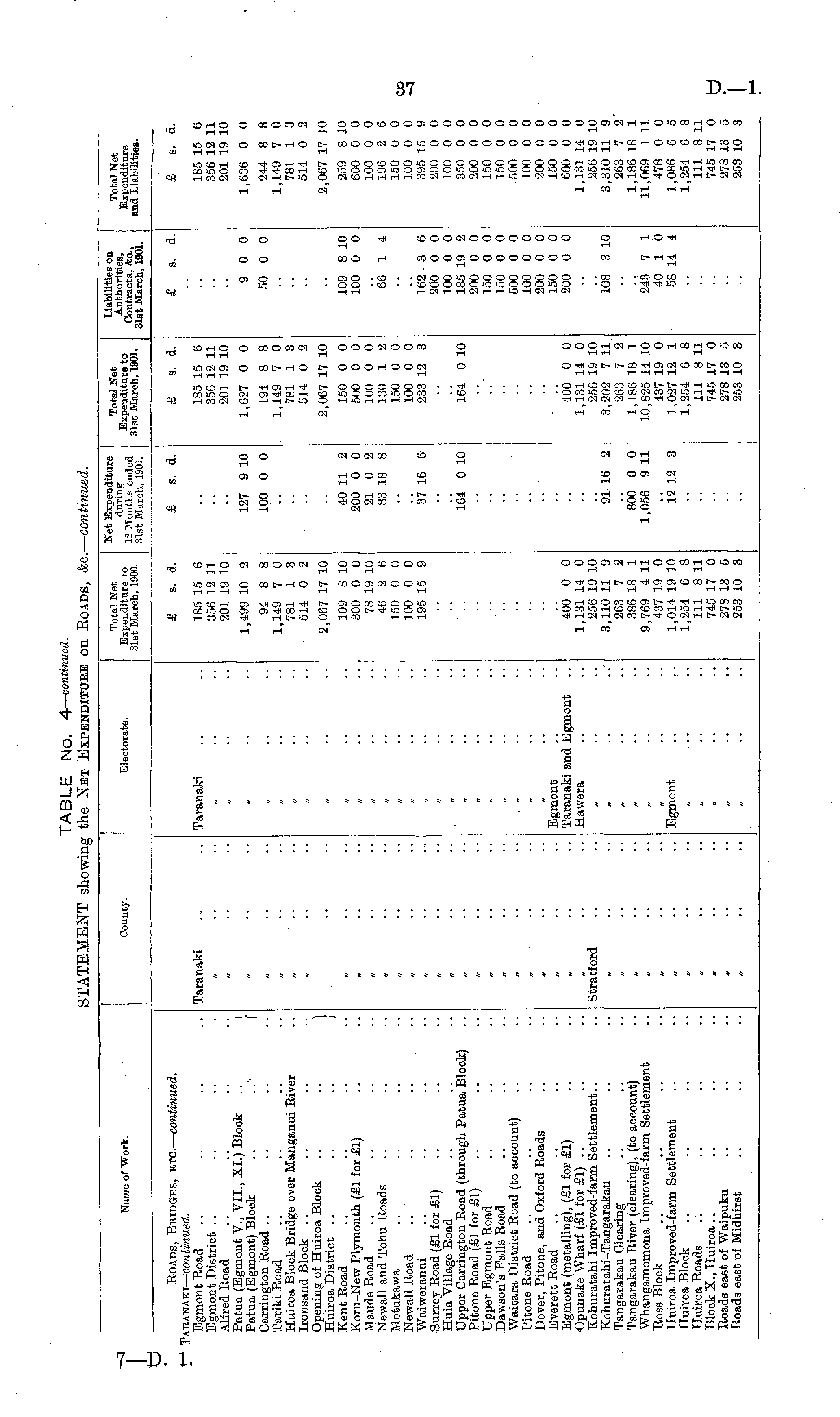 TABLE No. 4— continued. STATEMENT showing the Net Expenditure on Roads, &c.— continued.