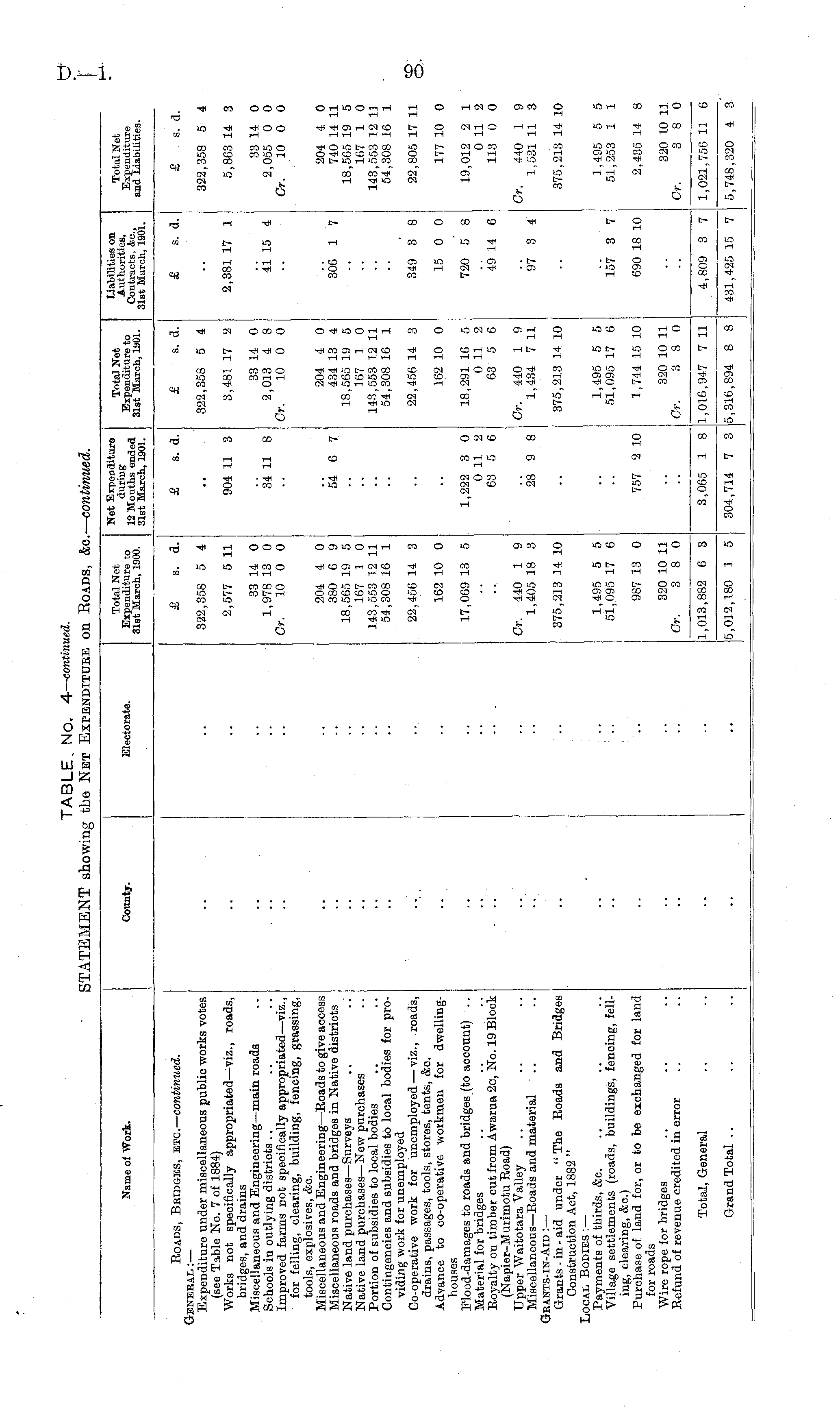 TABLE No. 4—continued. STATEMENT showing the Net Expenditure on Roads, &c.— continued.