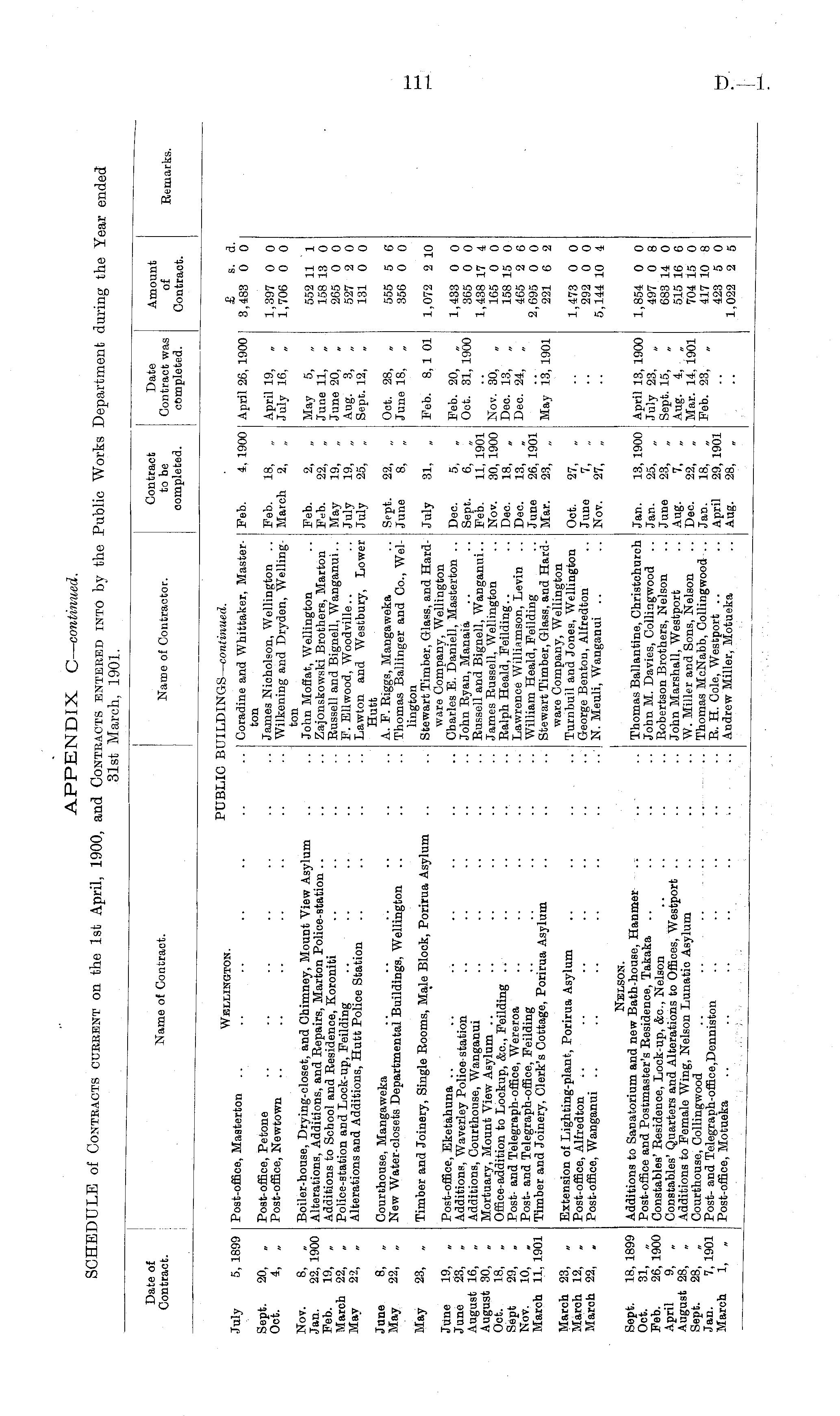 APPENDIX C— continued. SCHEDULE of Contracts current on the 1st April, 1900, and Contracts entered into by the Public Works Department during the Year ended 31st March, 1901.