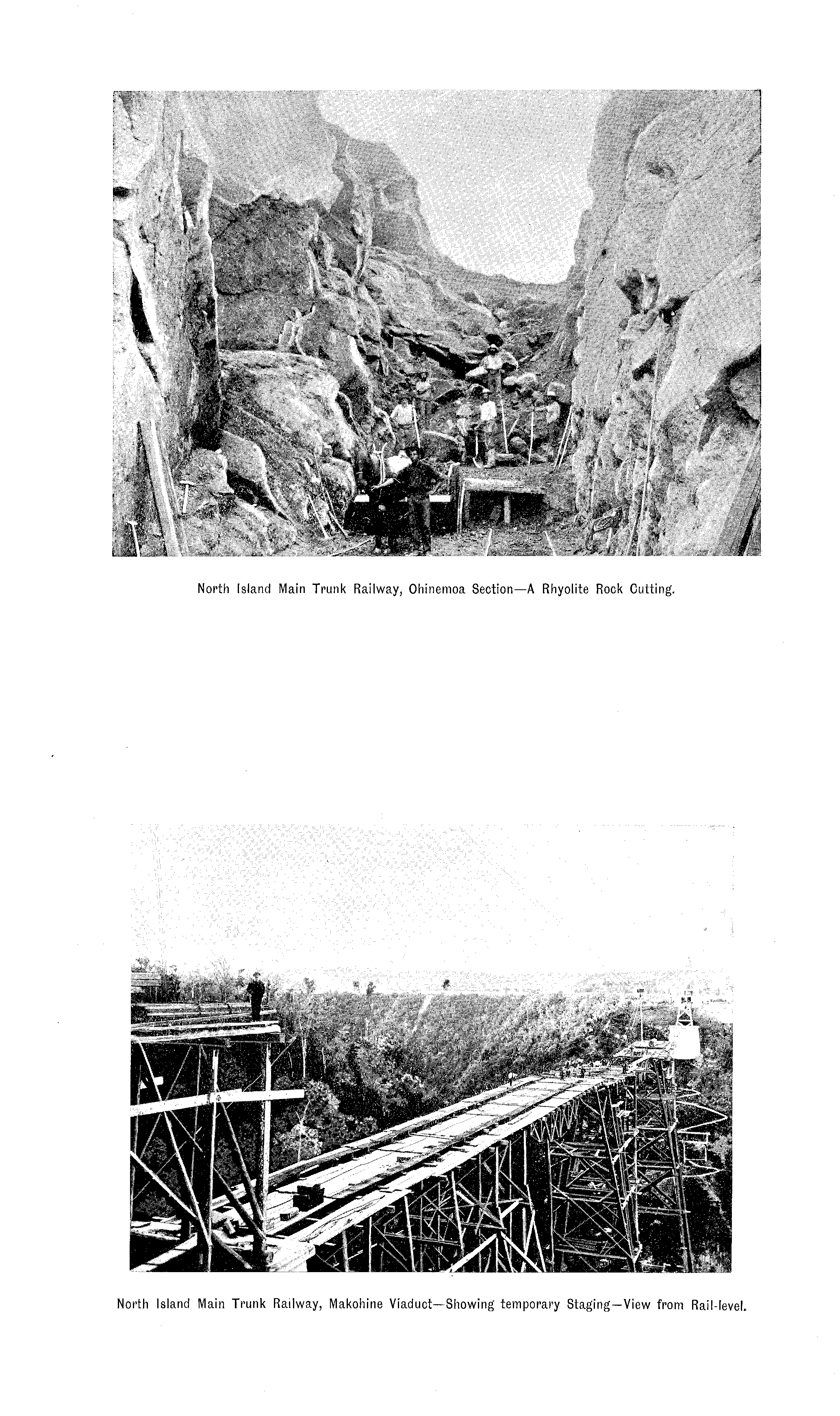 North Island Main Trunk Railway, Makohine Viaduct—Showing temporary Staging—View from Rail-level.