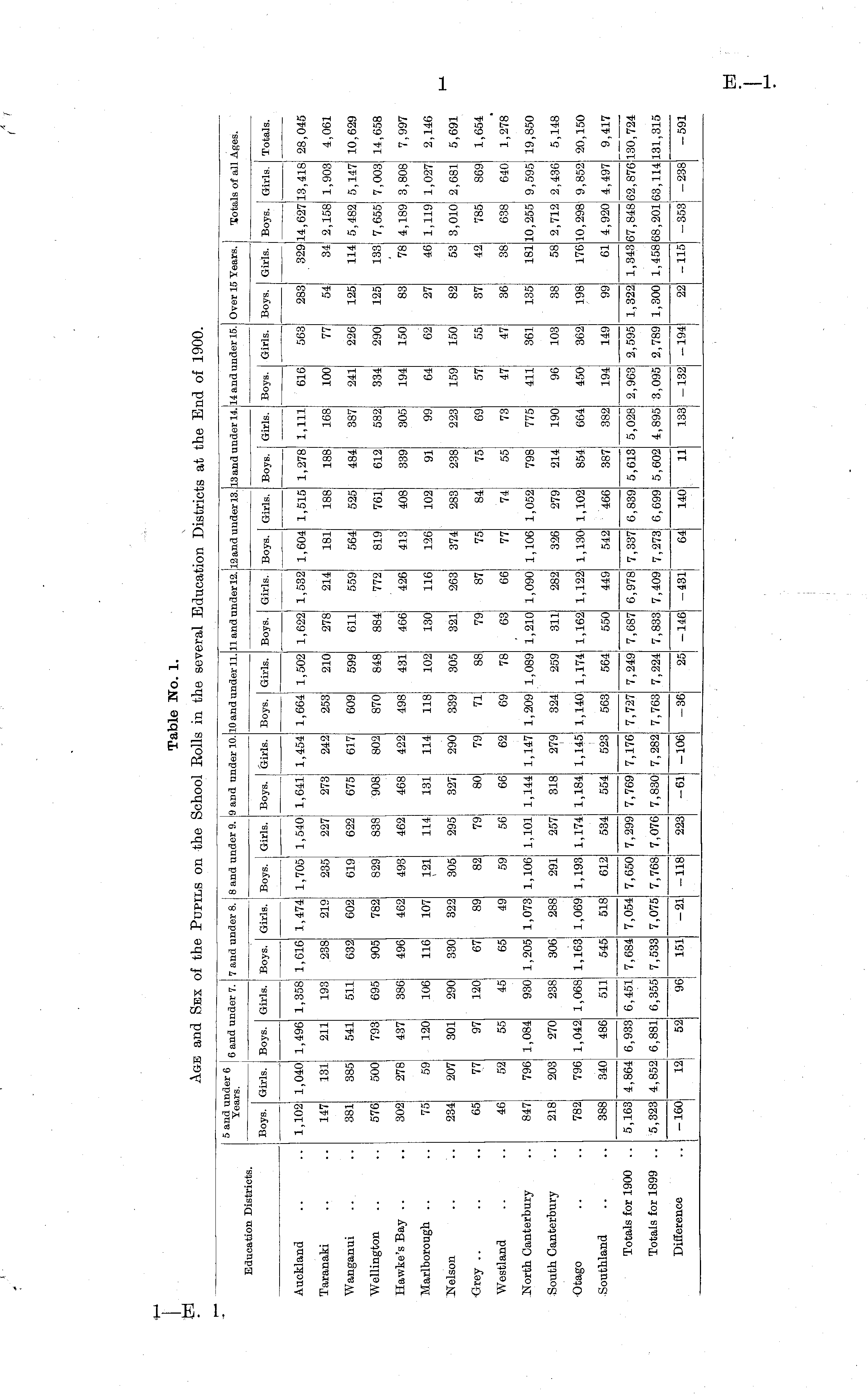 5 and under 6 Years. 6 and under 7. 7 and under 8. 8 and under 9. 9 and under 10. 10 and under 11. 11 and under 12. 12 and under 13. 13 and under 14. 14 and under 15. Over 15 Years. Totals of all Ages. Boys. Girls. Boys. Girls. Boys. Girls. Boys. Girls. Boys. Girls. Boys. Girls. Boys. Girls. Boys. Girls. Boys. Girls. Boys. Girls. Boys. Girls. Boys. Girls. Totals. ! !— I Auckland 1,102 1,040 1,496 1,358 1,616 1,474 1,705 1,540 1,641 1,454 1,664J ! 1,502 1,622 1,532 1,604 1,515 1,278 1,111 616 563 283 329 14,627 13,418 28,045 Taranaki 147 131 211 193 238 219 235 227 273 242 253 210 278 214 181 188 188 168 100 77 54 34 2,158 1,903 4,061 Wanganui 381 385! 541 511 632 602 619 622 675 617 609J 599 611 559 564 525 484 387 241 226 125 114 5,482 5,147 10,629 Wellington 576 500 793 695 905 782 829 838; 908 802 870 848 884 772 819 761 612 582 334 290 125 133 7,655| 7,003 14,658 Hawke's Bay 302 278 437 386 496 462 493 462 J 468 422 498 431 466 426 413 408 339 305 194 150 83 78 4,189 3,808 7,997 Maryborough 75 59 120 106 116 107 121 114 131 114 118 102 130 116 126 102 91 99 64 62 27 46 1,119 1,027 2,146 Nelson 234 207 301 290 330 322 305 295 327 290 339 305 321 263 374 283 238 223 159 150 82 53 3,010 2,681 5,691 Grey 65 77 97 120 67 89 82 79! 80 79 71 88 79 87 75 84 75 69 57 55 37 42 785; 869 1,654 Westland 46 52 55 J 65 49 59 56 66 62 69 78 63 66 77 74 55 73 47 47 36 38 638 640 1,278 North Canterbury 847 796 1,084 930 1,205 1,073 1,106 1,101 1,144 1,147 1,209 ■ 135 181 1,089 1,210 1,090 1,106 1,052 798 775 411 361 10,255 9,595 19,850 South Canterbury 218 203 I 270 238 306 288 291 257! 318 279 324 259 311 282 326 279 214 190 96 103 38 58 2,712 2,436 5,148 Otago 782 : 796! i 1,042 1,068 1,163 1,069 1,193 1,174 1,184 1,145 1,140 1,174 1,162 1,122 1,130 1,102 854 664 450| 362 198 176 10,298 ! 9,852 20,150 Southland 388 I 340 I 486 511 545 ■ 518 612 534| 554 523 563 564 550 449 542 466 387 382 194 149 99 - 4,920 4,497 9,417 Totals for 1900 .. 5,163 i 4,864 : 6,933 6,451 7,684 ; 7,054 7,650 7,299 7,769 7,176 7,727 7,249 7,687 6,978 6,839 5,613 5,028 2,963 2,595 1,322 1,343 67,848 62,876 130,724 7,337 Totals for 1899 .. 5,323 I 4,852 ! 6,881 1 52 6,355; 7,533 i 7,075 7,768 7,076 : ; 7,830 7,282 -106 7,763 7,224 7,833 7,409 7,273 6,699 140 5,602 11 4,895 3,095 2,789 1,300 1,458 68,201 63,114 i -238 131,315 -591 Difference -160 96 'I 151 -21 -118 223 -61 -36 25 -146 -431 133 -132 -194 22 i -353J 12 64 -115