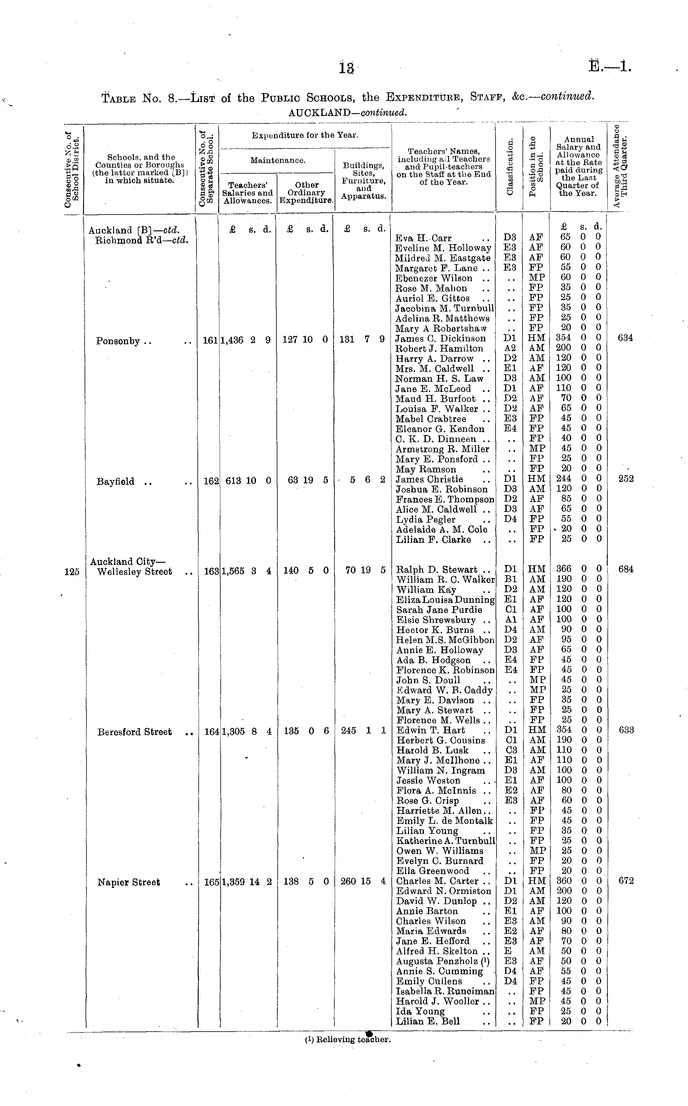 Table No. 8. —List of the Public Schools, the Expenditure, Staff, &c.— continued. AUCKLAND— continued.