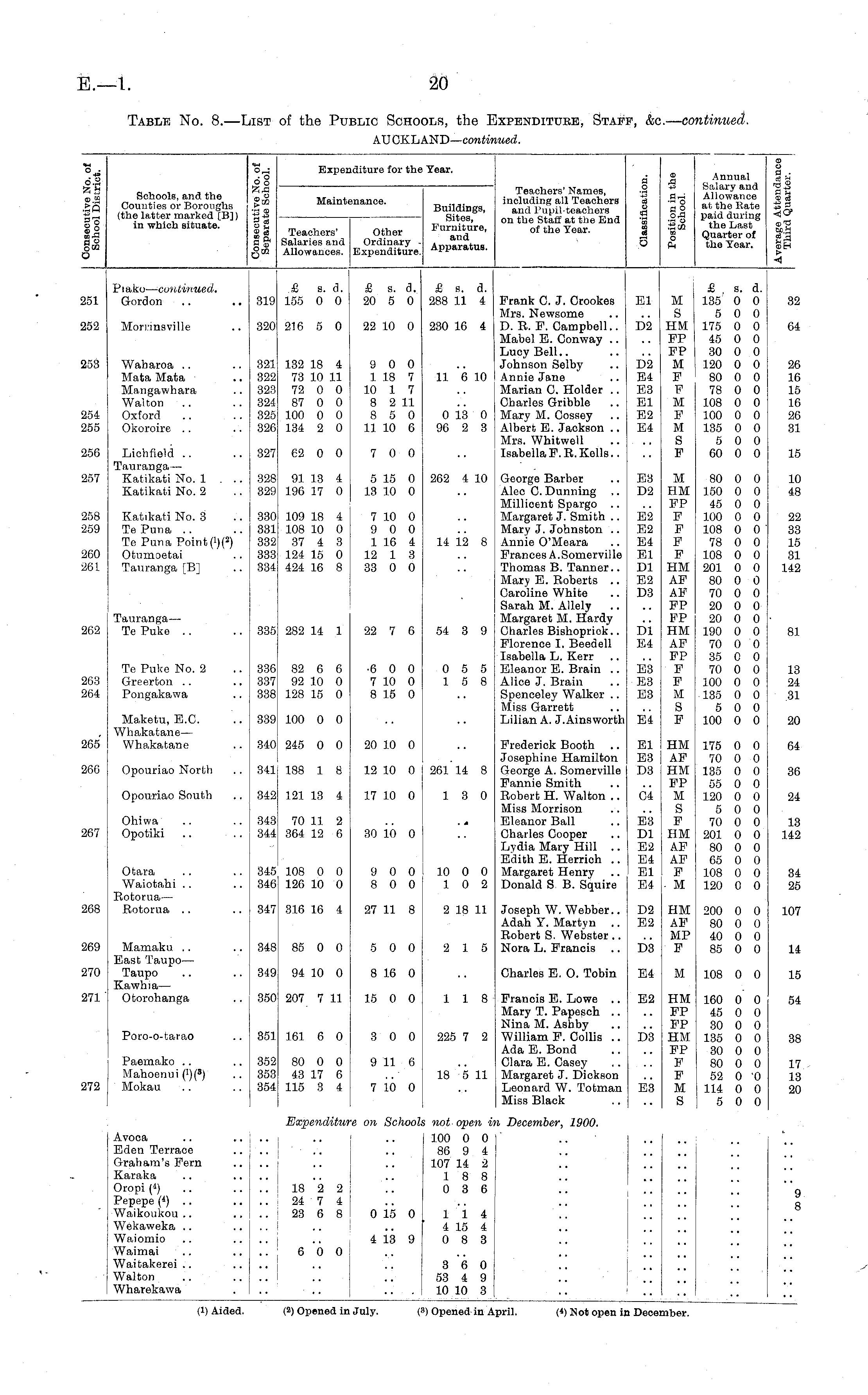 Table No. 8.—List of the Public Schools, the Expenditure, Staff, &c.— continued. AUCKLAND— continued.
