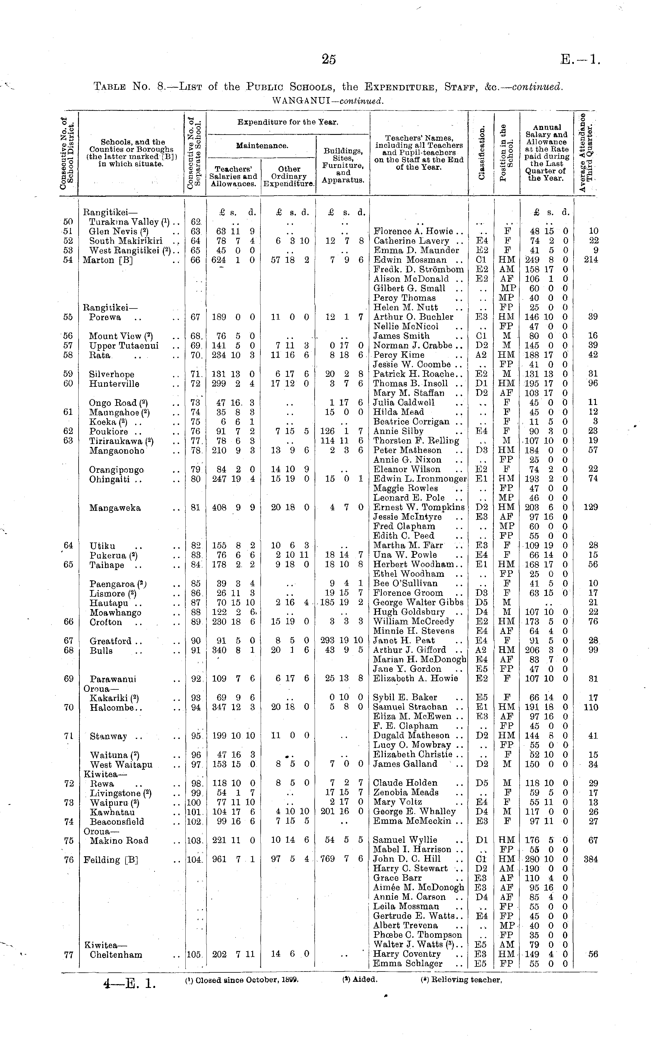 Table No. 8.—List of the Public Schools, the Expenditure, Staff, &c.— continued. WANGANUI— continued.