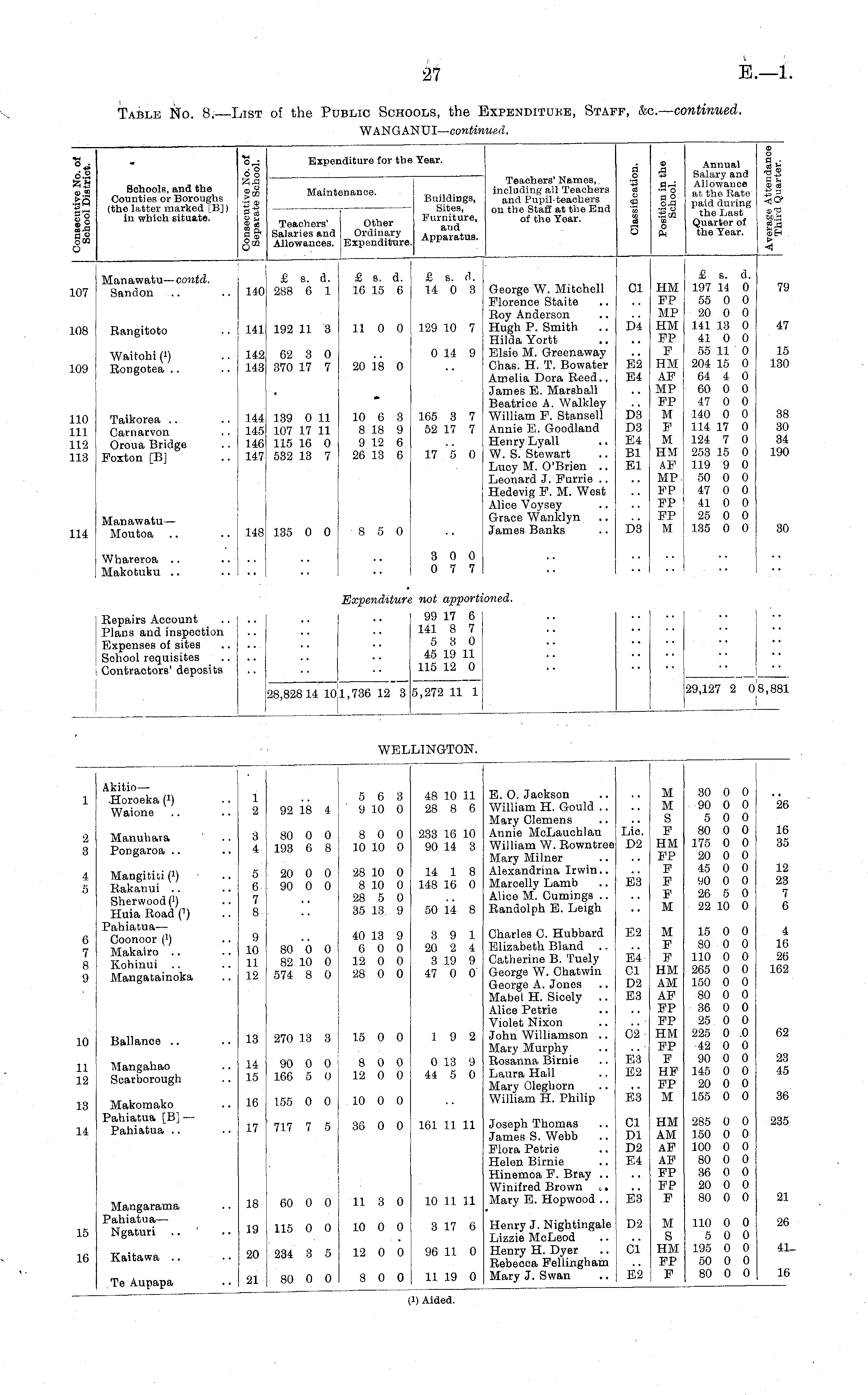 Table No. 8.—List of the Public Schools, the Expenditure, Staff, &c. — continued. WANGANUI— continued.