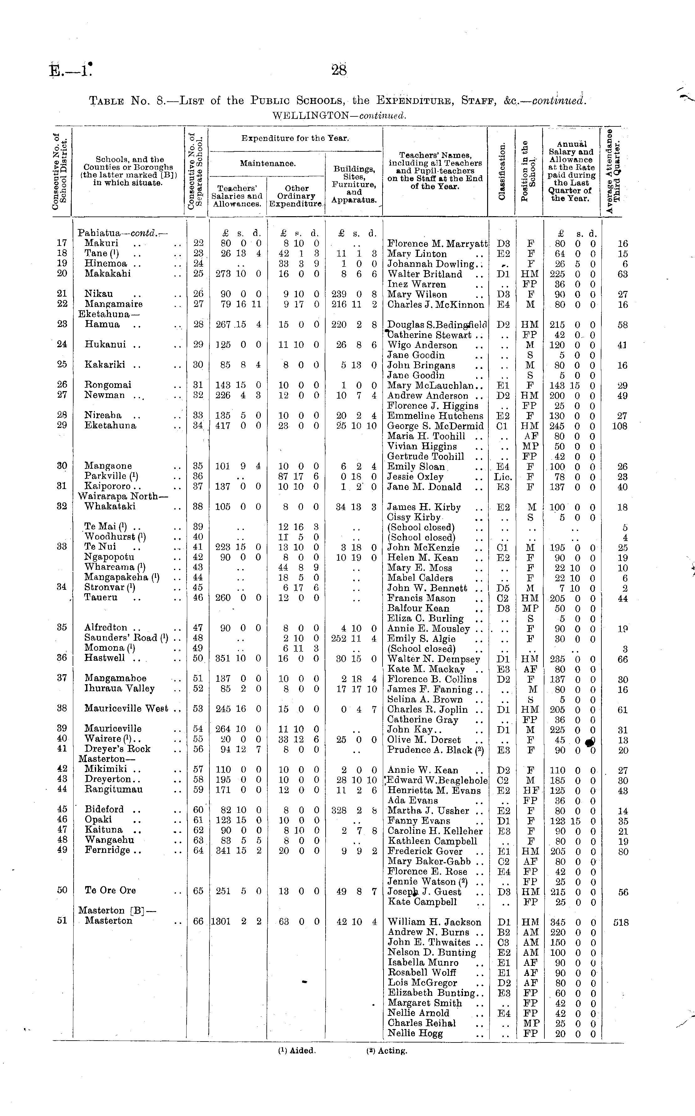 Table No. 8.—List of the Public Schools, the Expenditure, Staff, &c.— continued. WELLINGTON— continued.