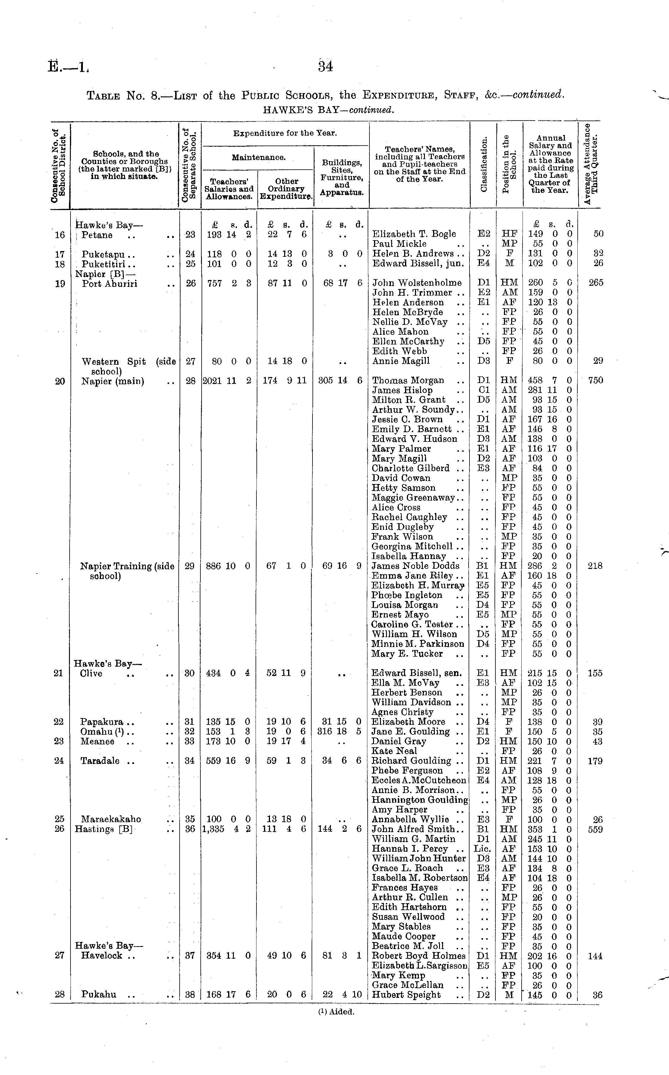 Table No. 8.—List of the Public Schools, the Expenditure, Staff, &c.— continued. HAWKE'S BAY— continued.