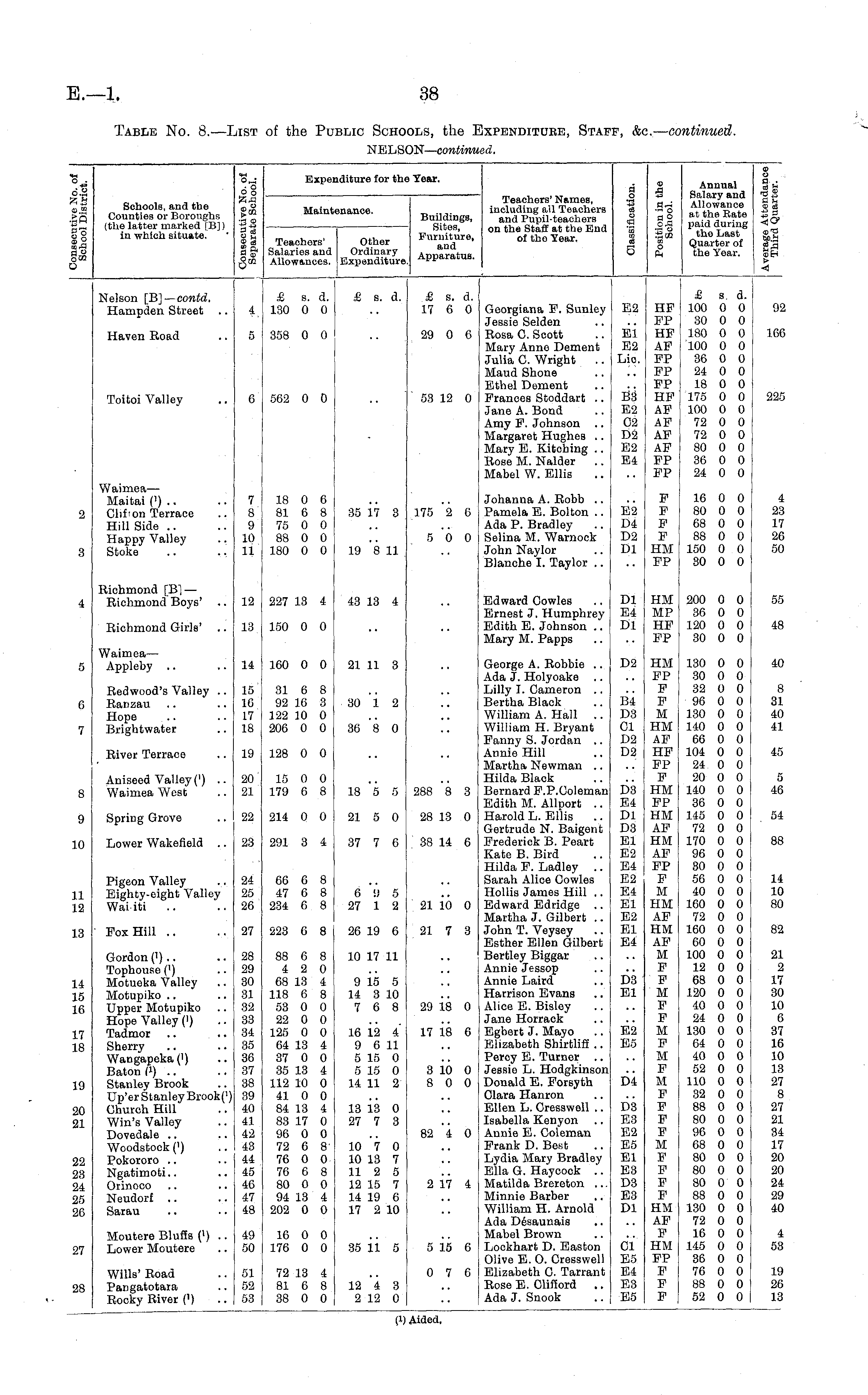 Table No. 8.—List of the Public Schools, the Expenditure, Staff, &c.— continued. NELSON— continued.