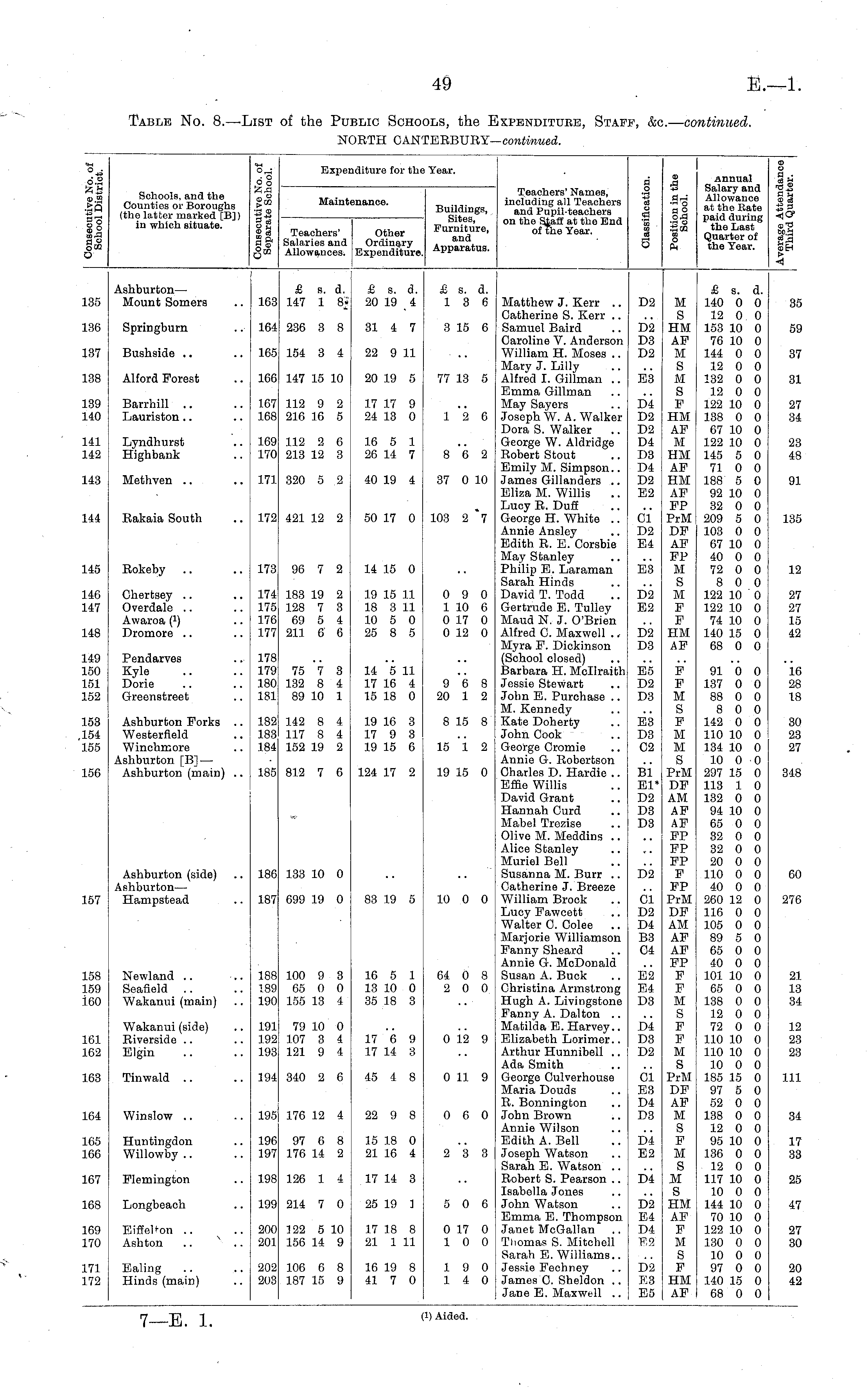 Table No. 8.—List of the Public Schools, the Expenditure, Staff, &c.— continued. NORTH CANTERBURY— continued.