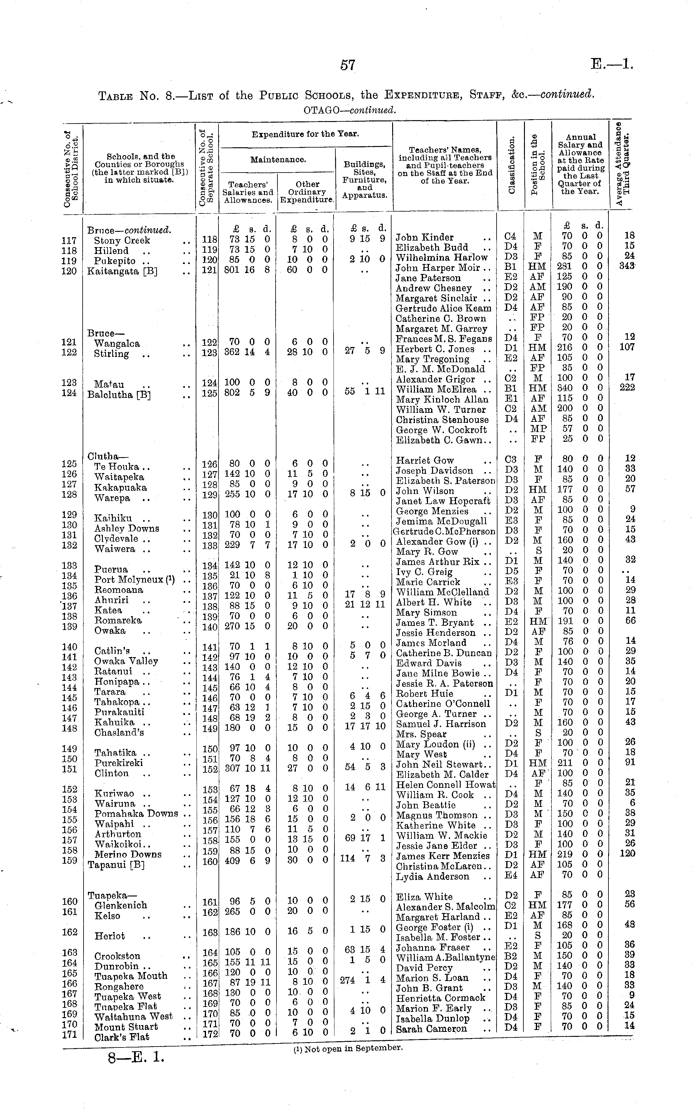 Table No. 8.—List of the Public Schools, the Expenditure, Staff, &c.— continued. OTAGO— continued.