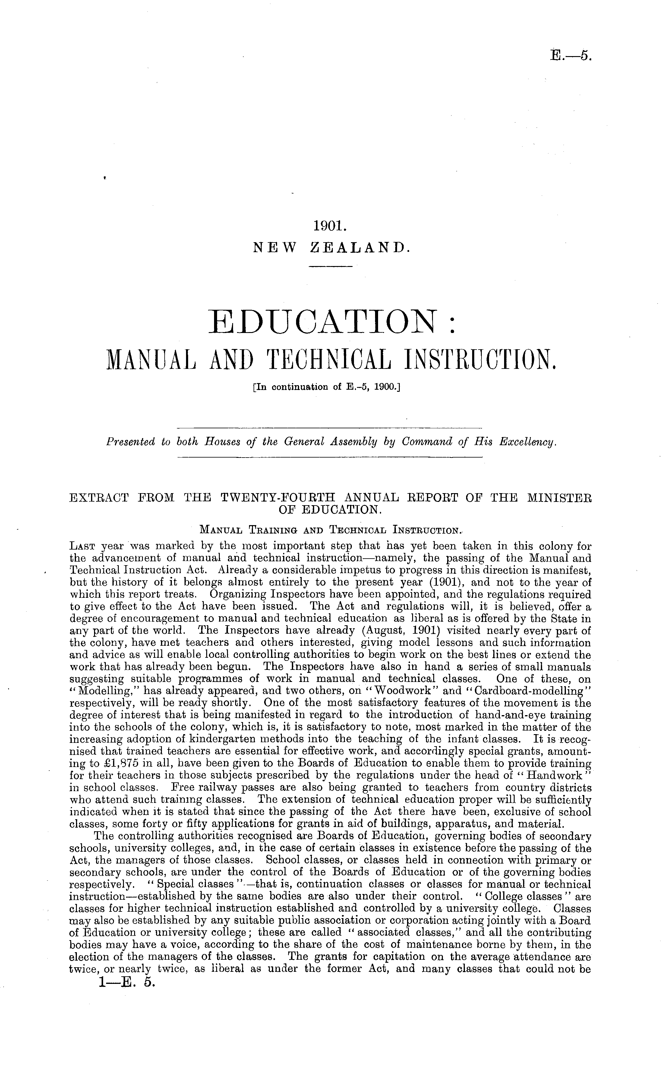 EDUCATION: MANUAL AND TECHNICAL INSTRUCTION. [In continuation of E.-5, 1900.]