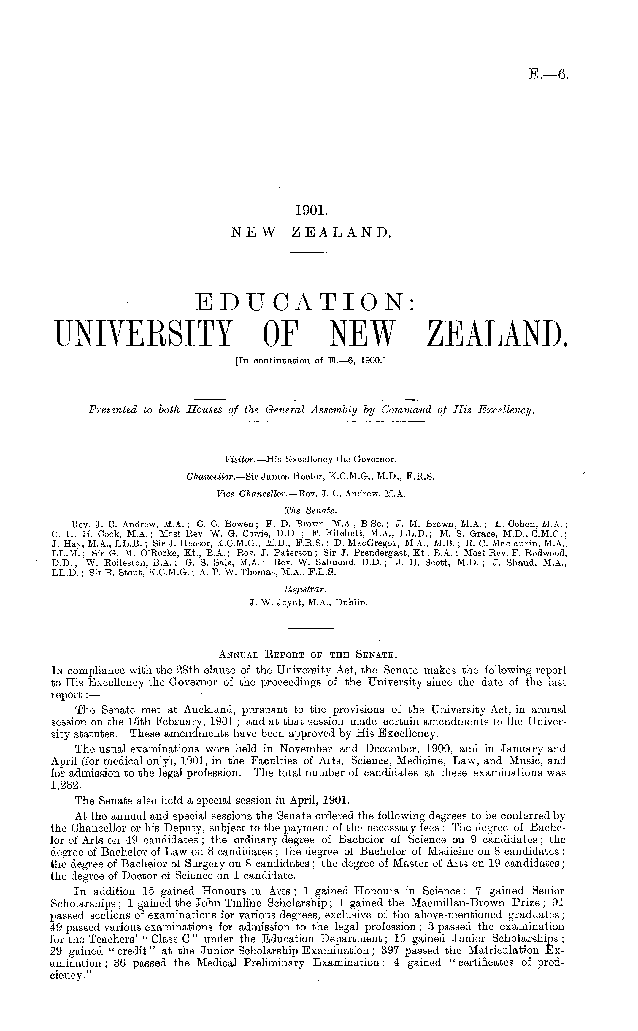 EDUCATION: UNIVERSITY OF NEW ZEALAND. [In continuation of E.—6, 1900.]