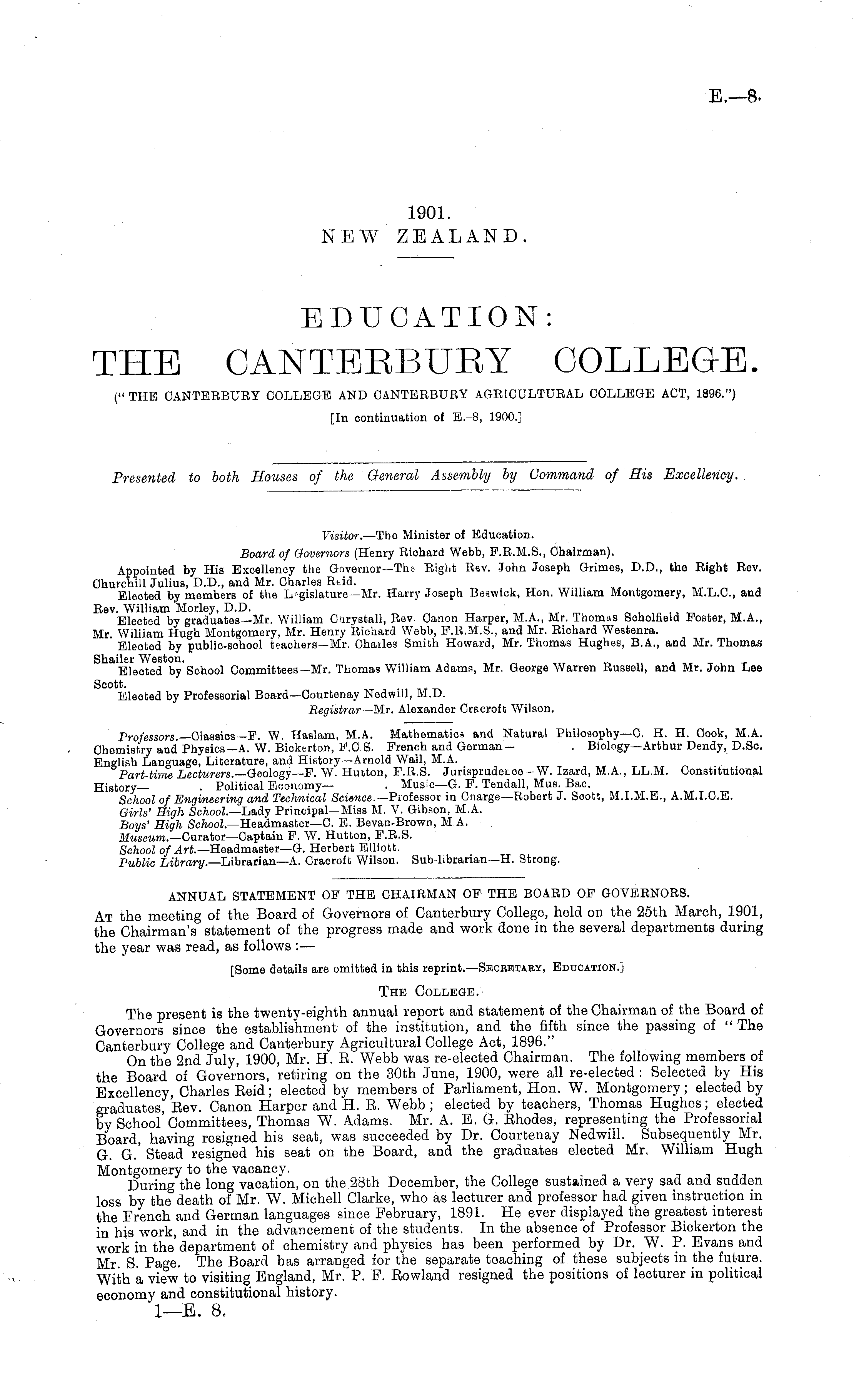 EDUCATION: THE CANTERBURY COLLEGE. ("THE CANTERBURY COLLEGE AND CANTERBURY AGRICULTURAL COLLEGE ACT, 1896.") [In continuation of E.-8, 1900.]