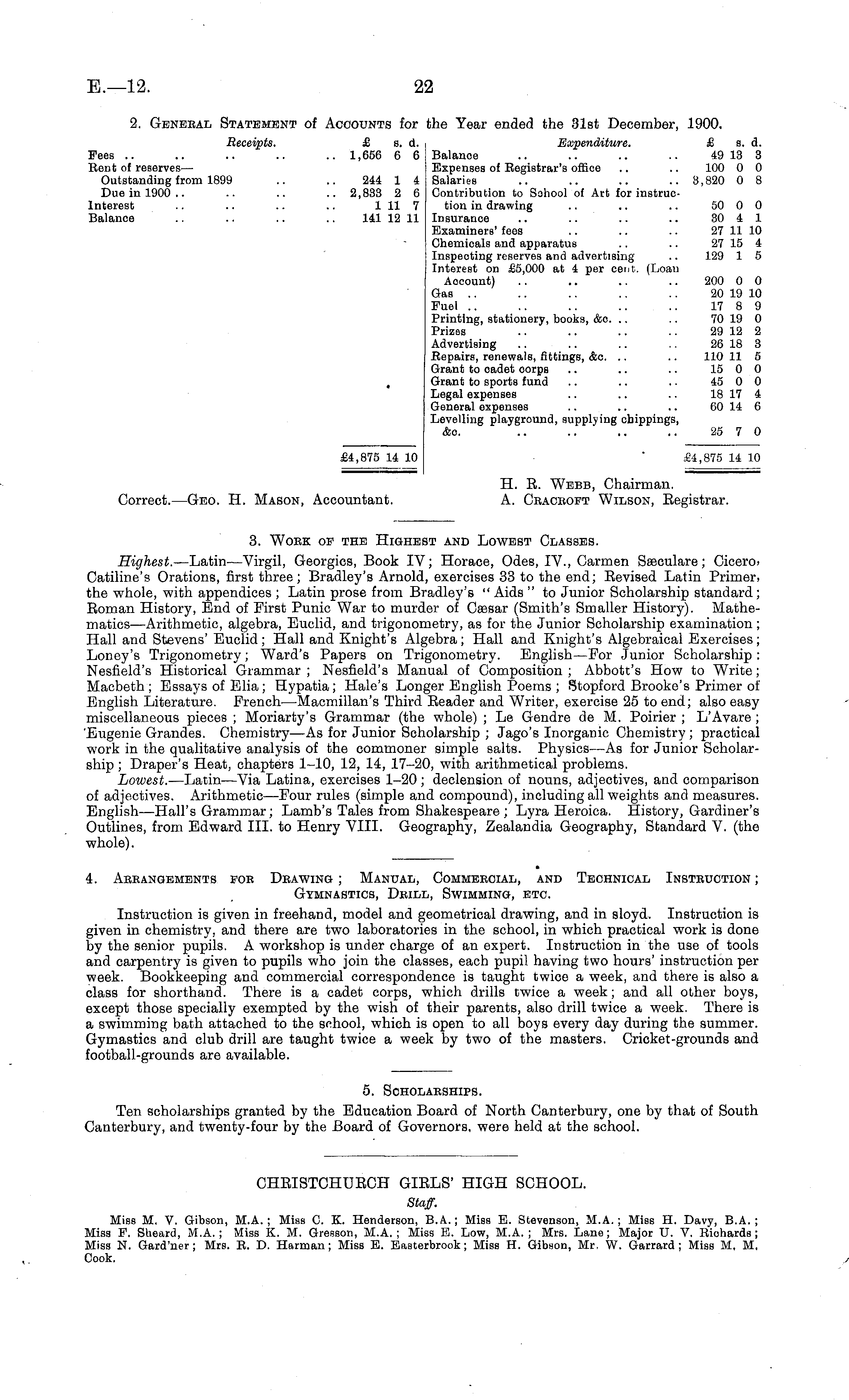 CHRISTCHUBCH GIRLS' HIGH SCHOOL. Staff. Miss M. V. Gibson, M.A. ; Miss C. K. Hendereon, 8.A.; Miss E. Stevenson, M.A. ; Miss H. Davy, B.A. ; Miss F. Sheard, M.A. ; Miss K. M. Gresson, M.A. ; Miss E. Low, M.A. ; Mrs. Lane; Major U. V. Richards; Miss N. Gardner; Mrs. R. D. Harman; Miss E. Easterbrook; Miss H. Gibson, Mr. W. Garrard ; Miss M. M. Cook.