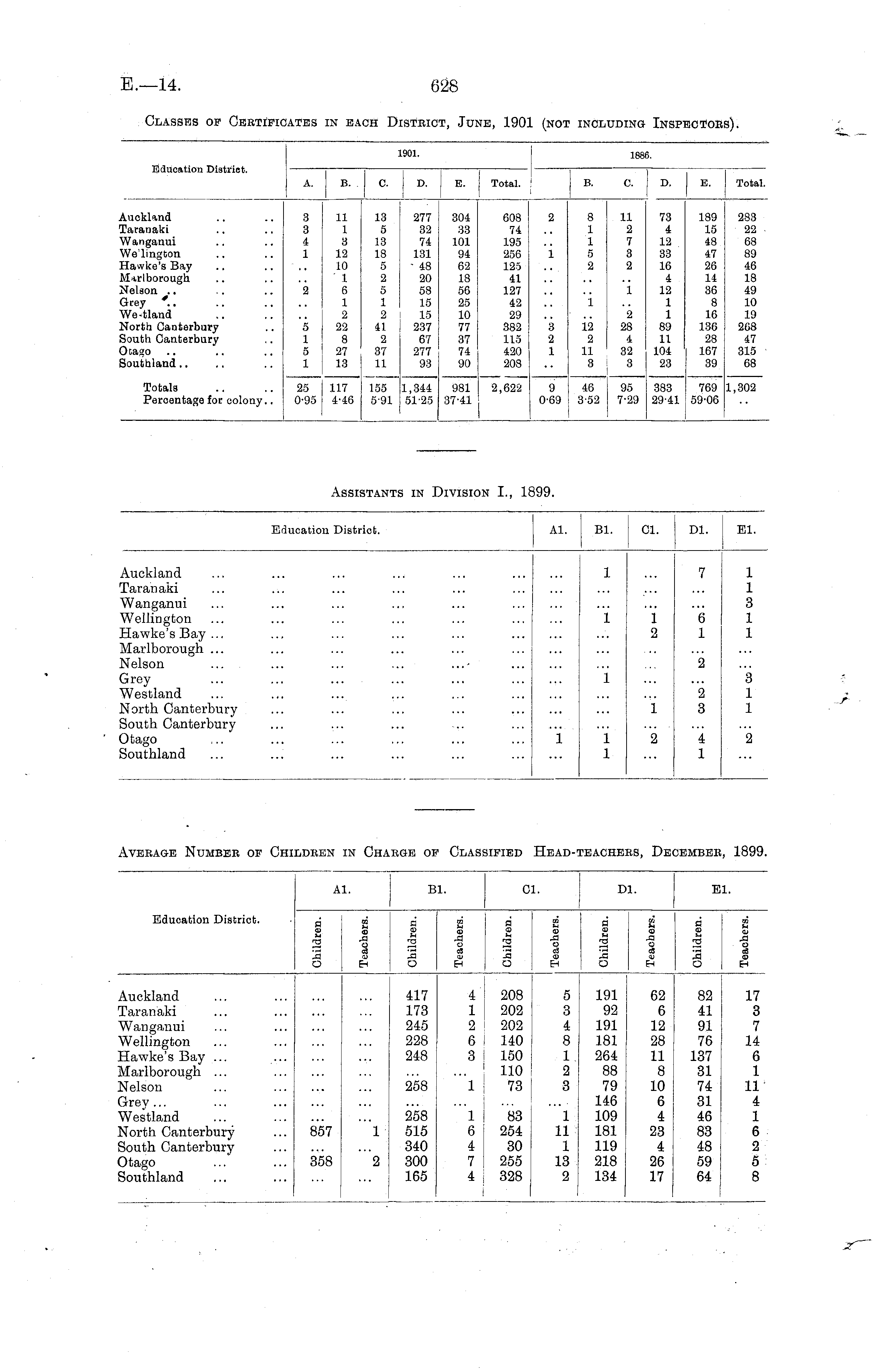 1901. 1886. Education District. A. B. C. D. E. Total. B. C. D. E. Total. Auckland Taranaki Wanganui We'lington Hawke's Bay Marlborough Nelson Grey '.. We-tland North Canterbury South Canterbury Ocaao Southland 3 3 4 1 2 11 1 3 12 10 1 6 1 2 22 8 27 13 13 5 13 18 5 2 5 1 2 41 i 2 37 11 277 32 74 131 - 48 20 58 15 15 237 67 277 93 304 33 101 94 62 18 56 25 10 77 37 74 90 608 74 195 256 125 41 127 42 29 382 115 420 208 2 i 8 1 1 5 2 i 11 2 7 3 2 i 73 189 4 15 12 48 33 47 16 26 4 14 12 36 1 8 1 16 89 136 11 28 104 167 23 39 383 769 29-41 59-06 283 22 68 89 46 18 49 10 19 268 47 315 68 5 1 5 1 3 2 1 12 2 11 3 2 28 4 32 3 Totals Percentage for colony.. 25 J 0-95 I 117 4-46 155 5-91 1,344 51-25 981 37-41 2,622 9 0-69 46 3-52 95 7-29 1,302
