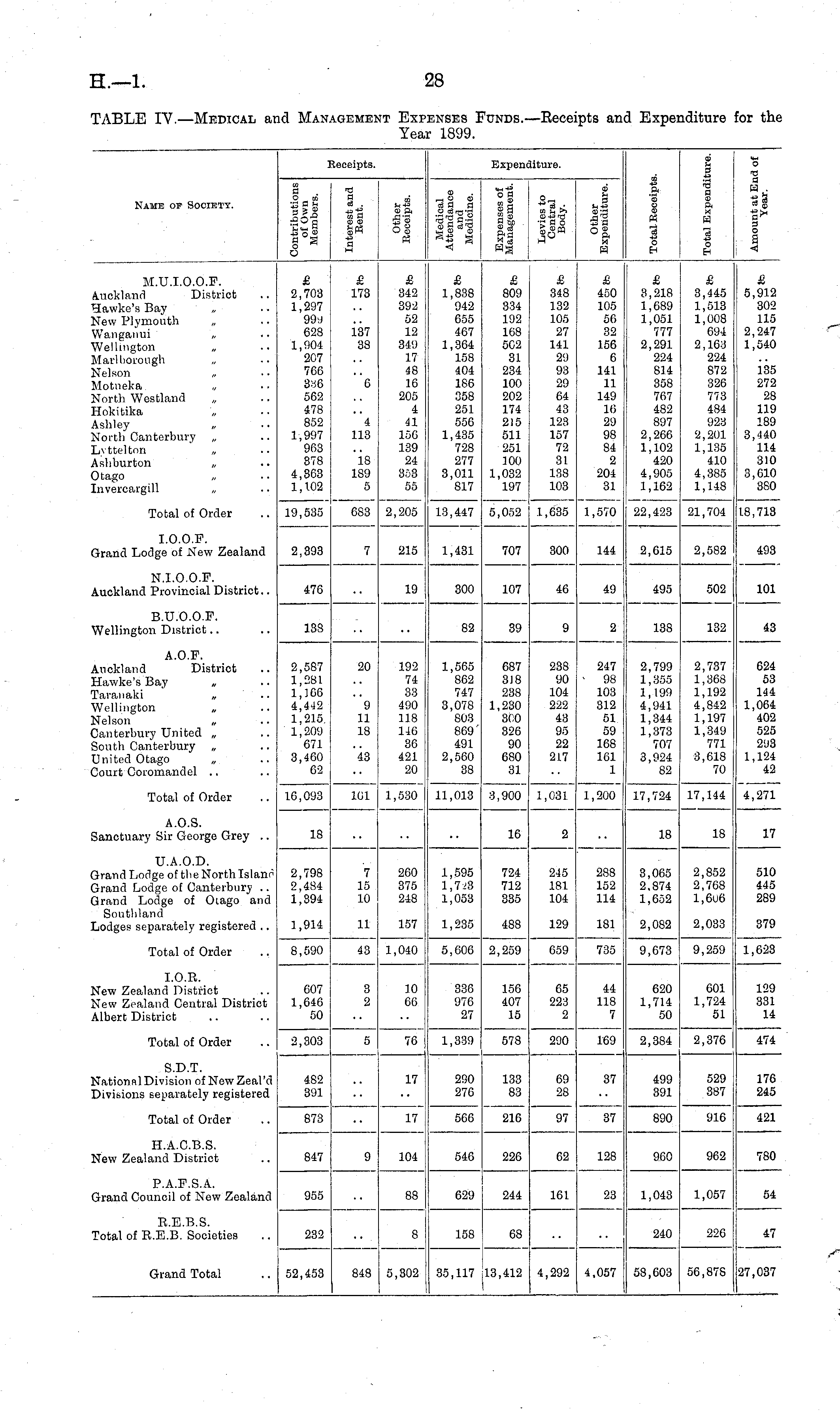 TABLE IV.—Medical and Management Expenses Funds.—Receipts and Expenditure for the Year 1899.