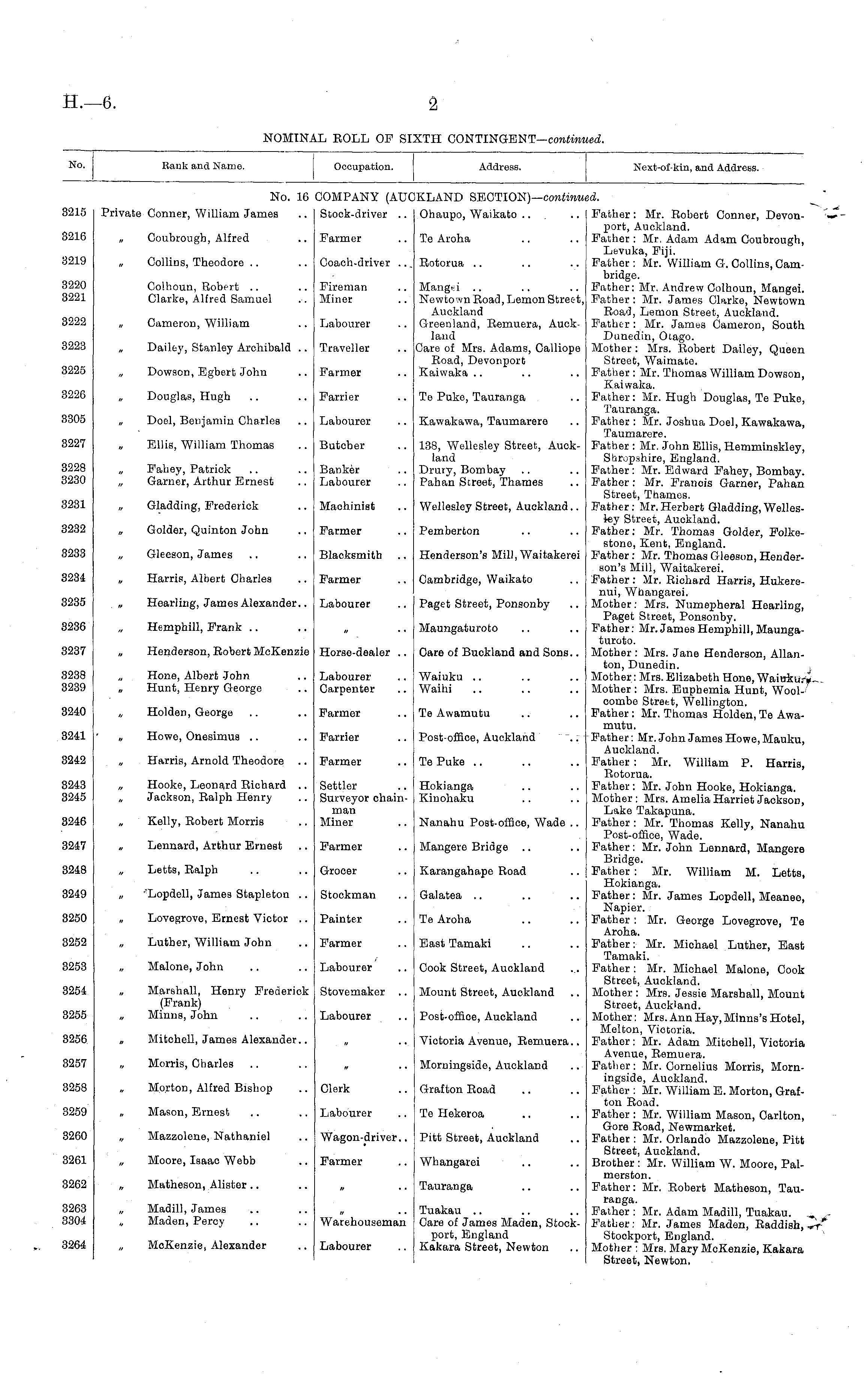 NOMINAL ROLL OF SIXTH CONTINGENT— continued.