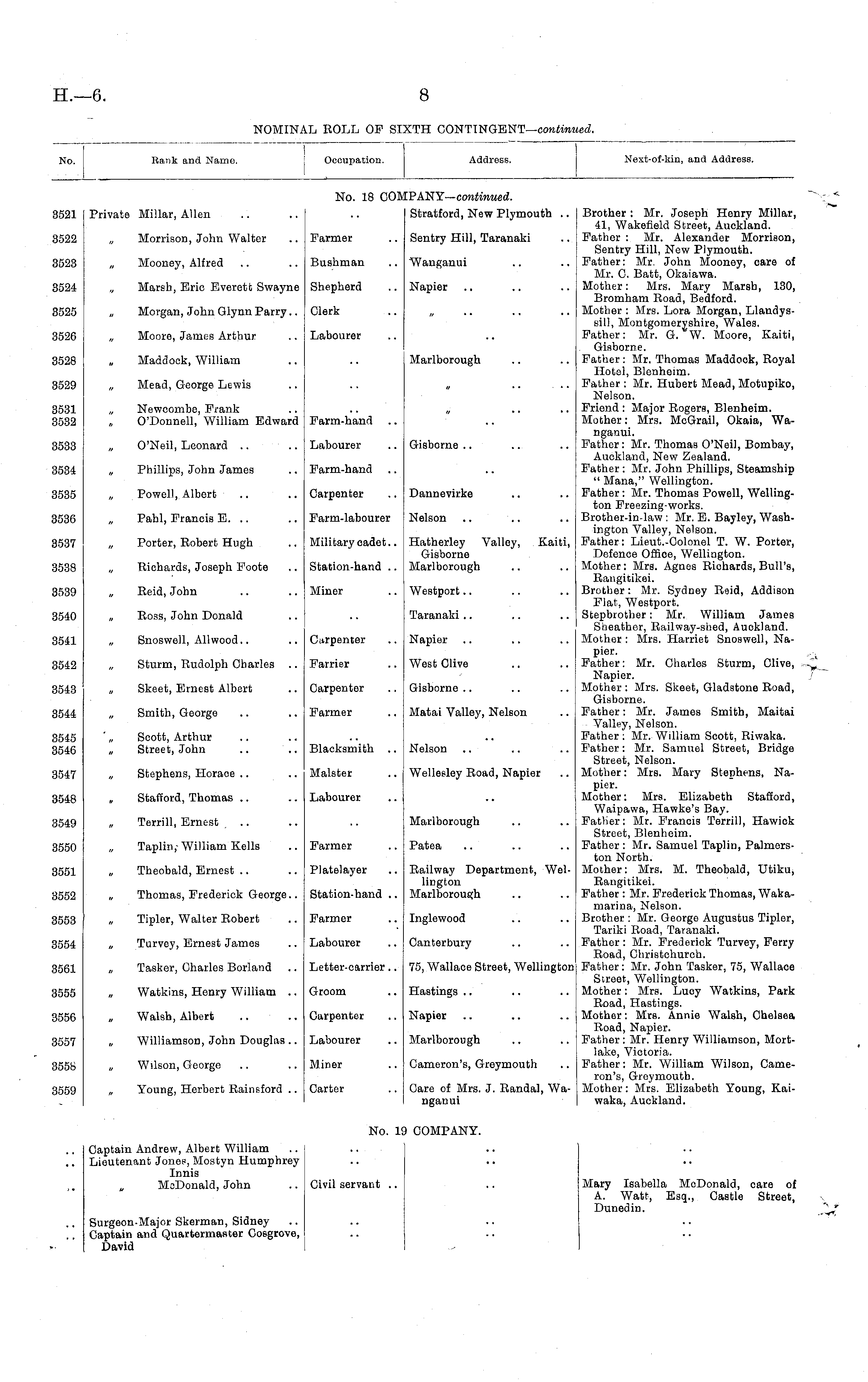 NOMINAL ROLL OF SIXTH CONTINGENT— continued.