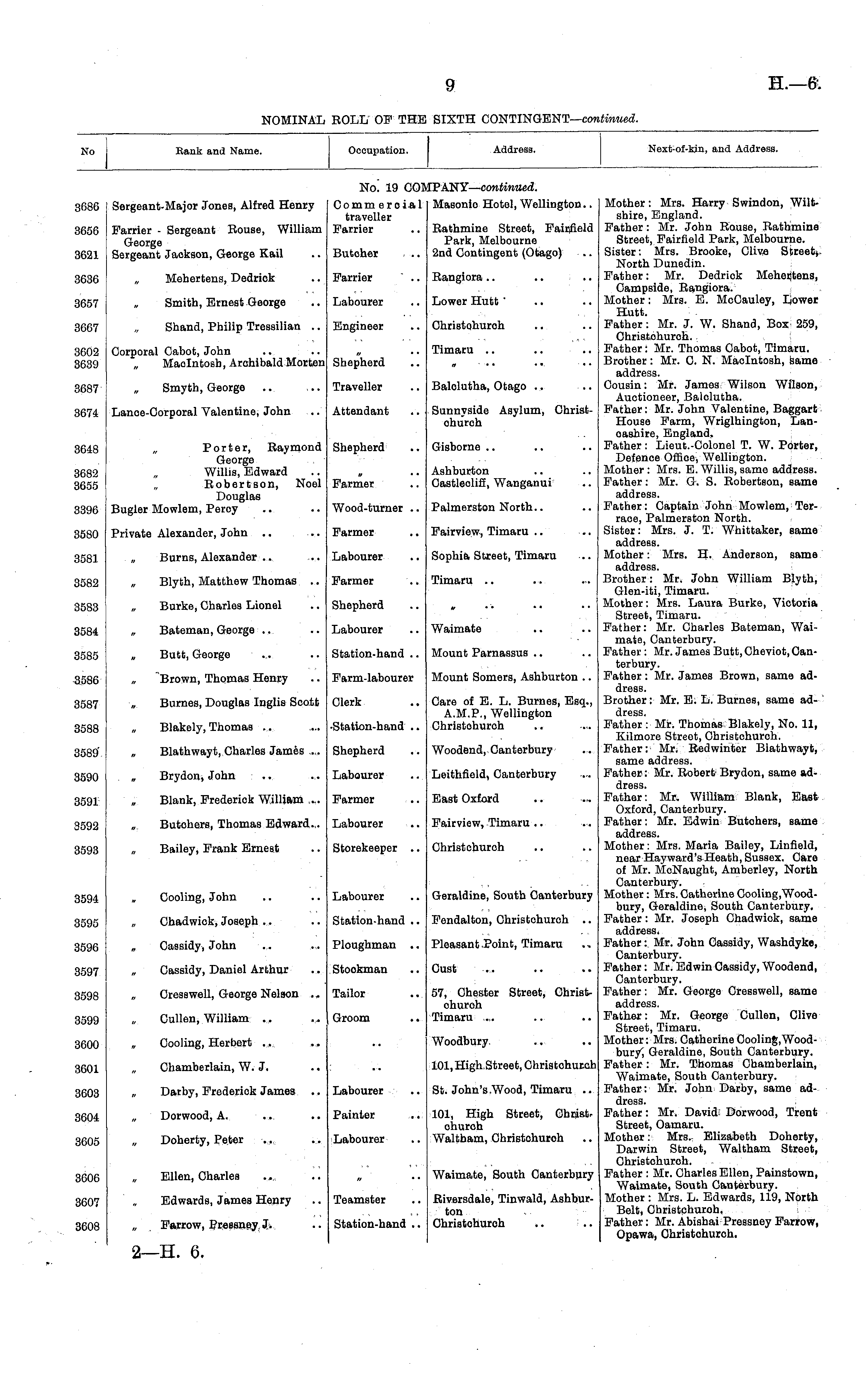NOMINAL ROLL OF THE SIXTH CONTINGENT— continued.