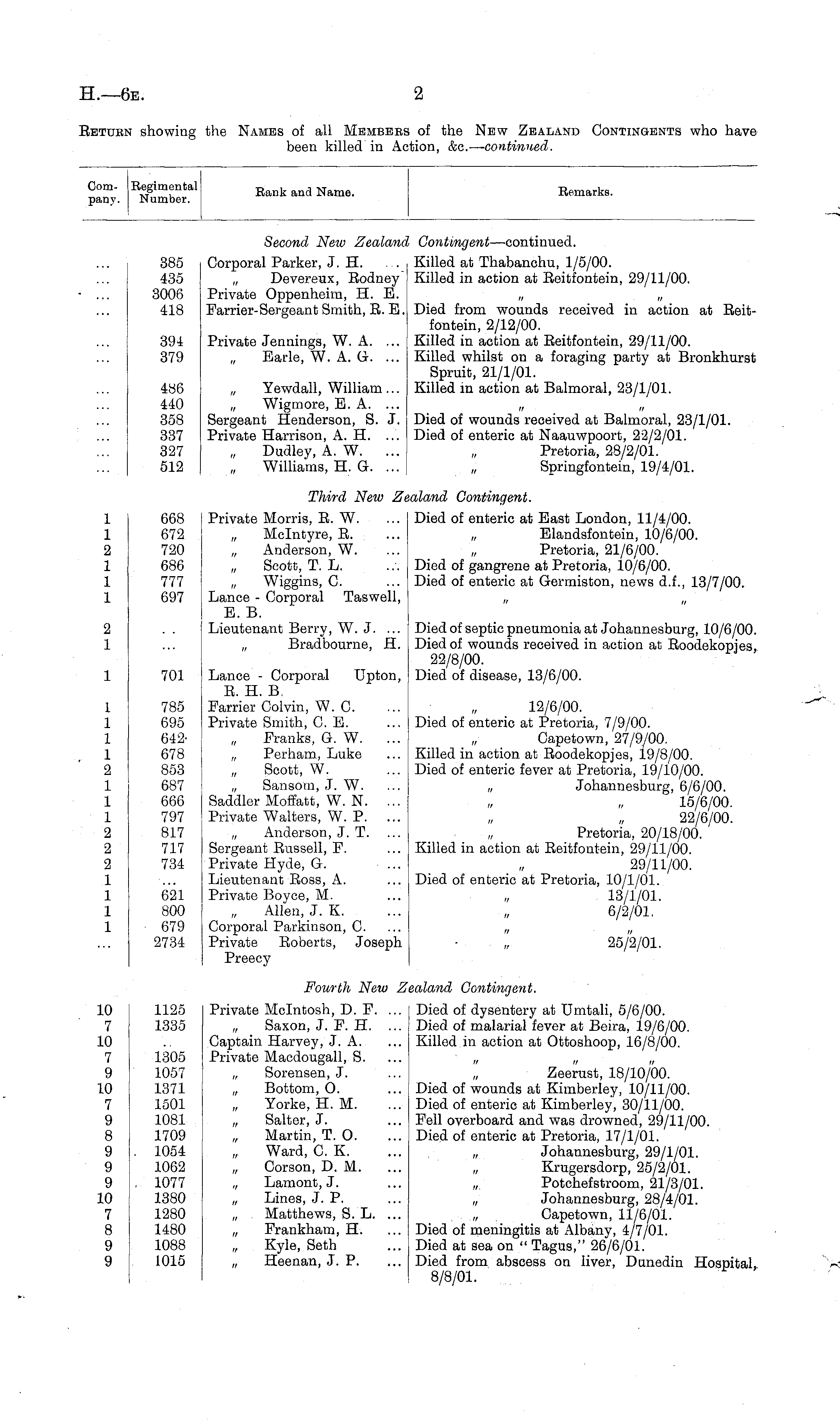 Return showing the Names of all Members of the New Zealand Contingents who have been killed in Action, &c.—continued.