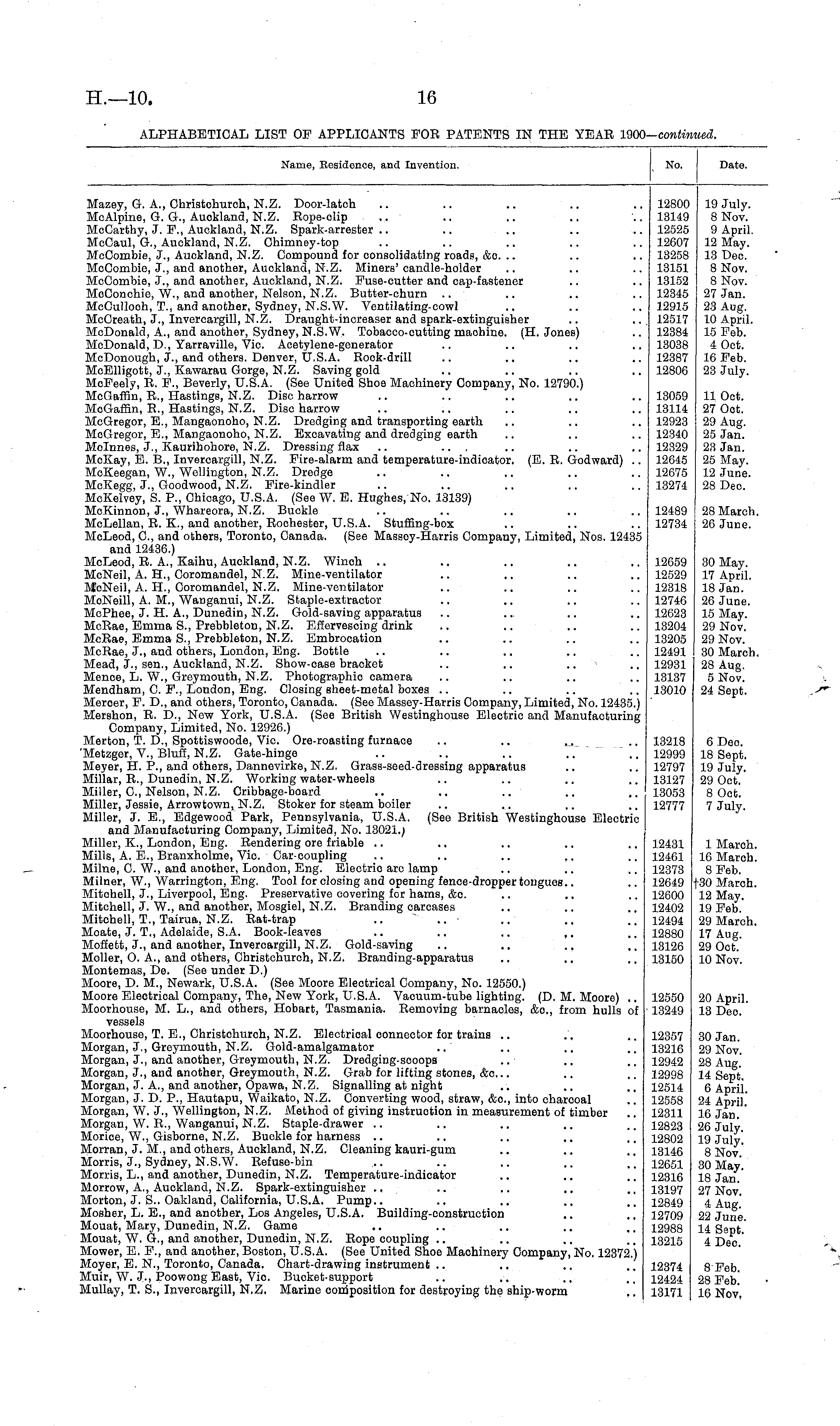 ALPHABETICAL LIST OF APPLICANTS FOR PATENTS IN THE YEAR 1900 —continued.