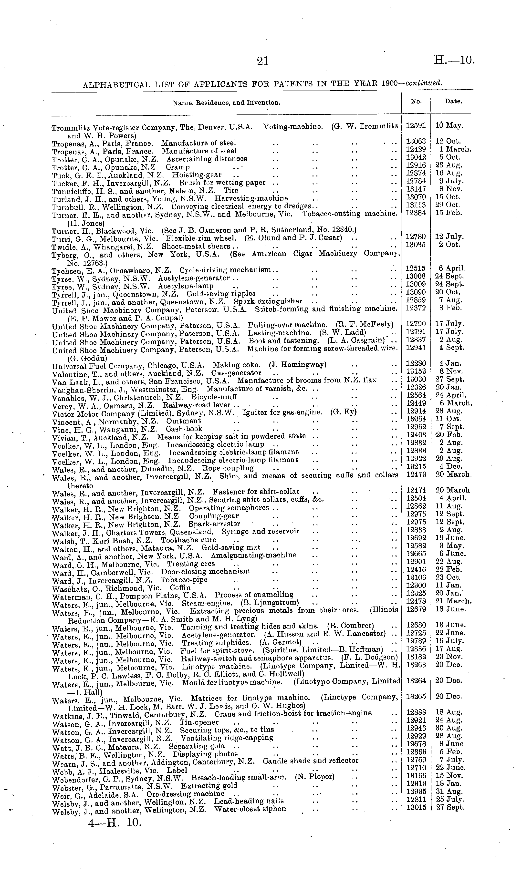 ALPHABETICAL LIST OF APPLICANTS FOR PATENTS IN THE YEAR 1900— continued.