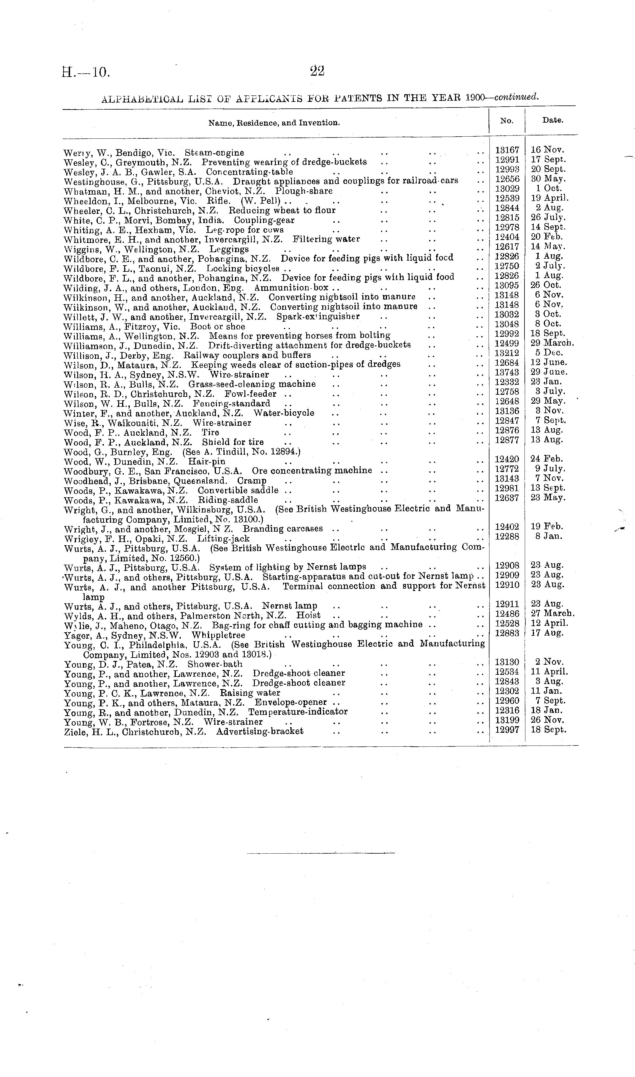 ALPHABETICAL LIST OF APPLICANTS FOR PATENTS IN THE YEAR 1900— continued.