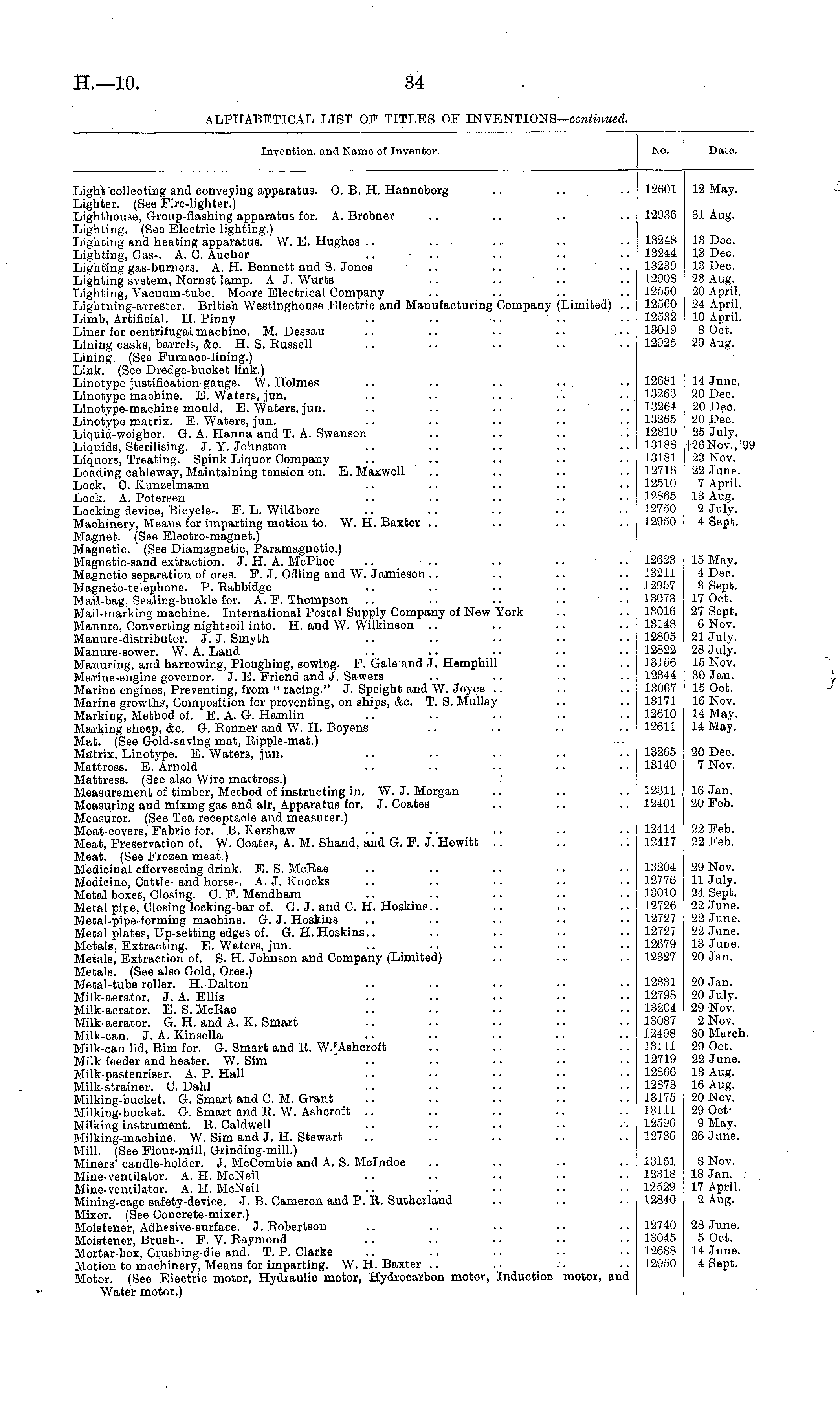 ALPHABETICAL LIST OF TITLES OF INVENTIONS-continued.