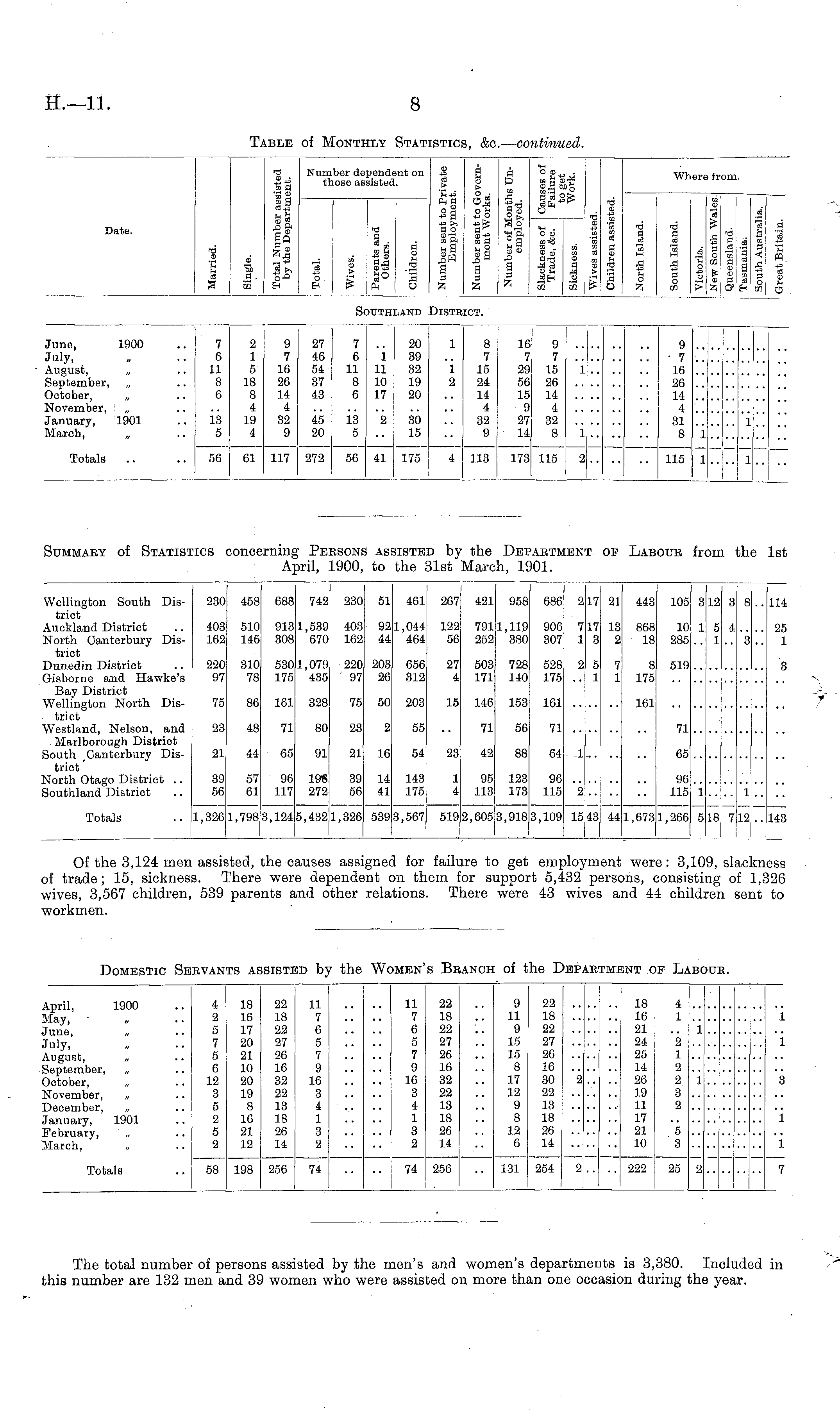 Summary of Statistics concerning Persons assisted by the Department of Labour from the 1st April, 1900, to the 31st March, 1901.