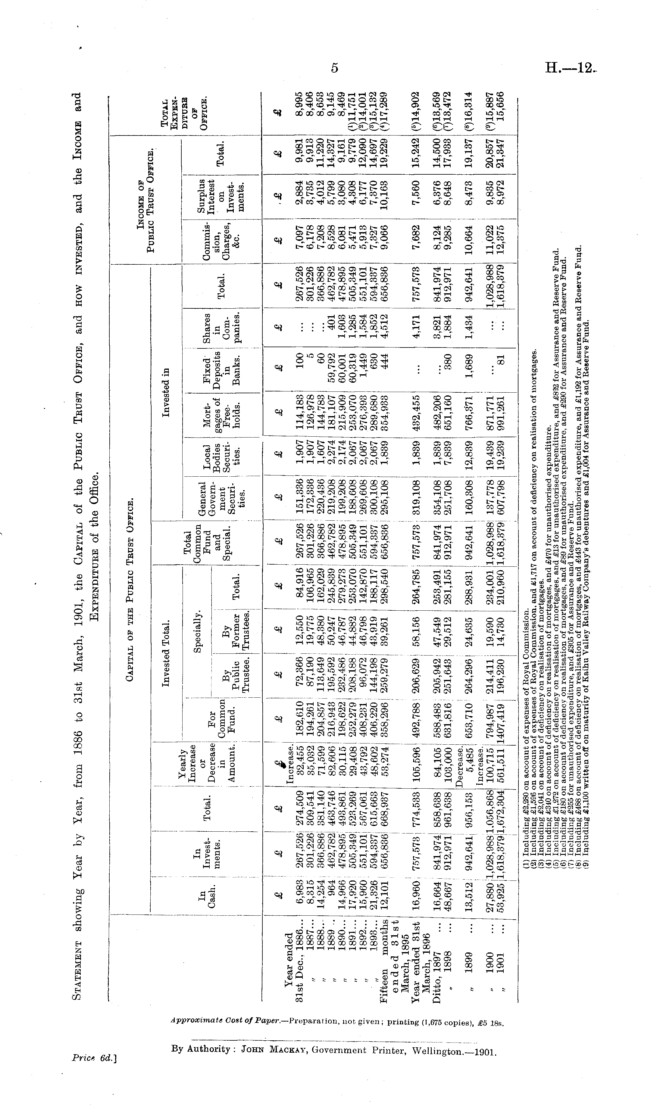 Statement showing Year by Year, from 1886 to 31st March, 1901, the Capital of the Public Trust Office, and how invested, and the Income and Expenditure of the Office.