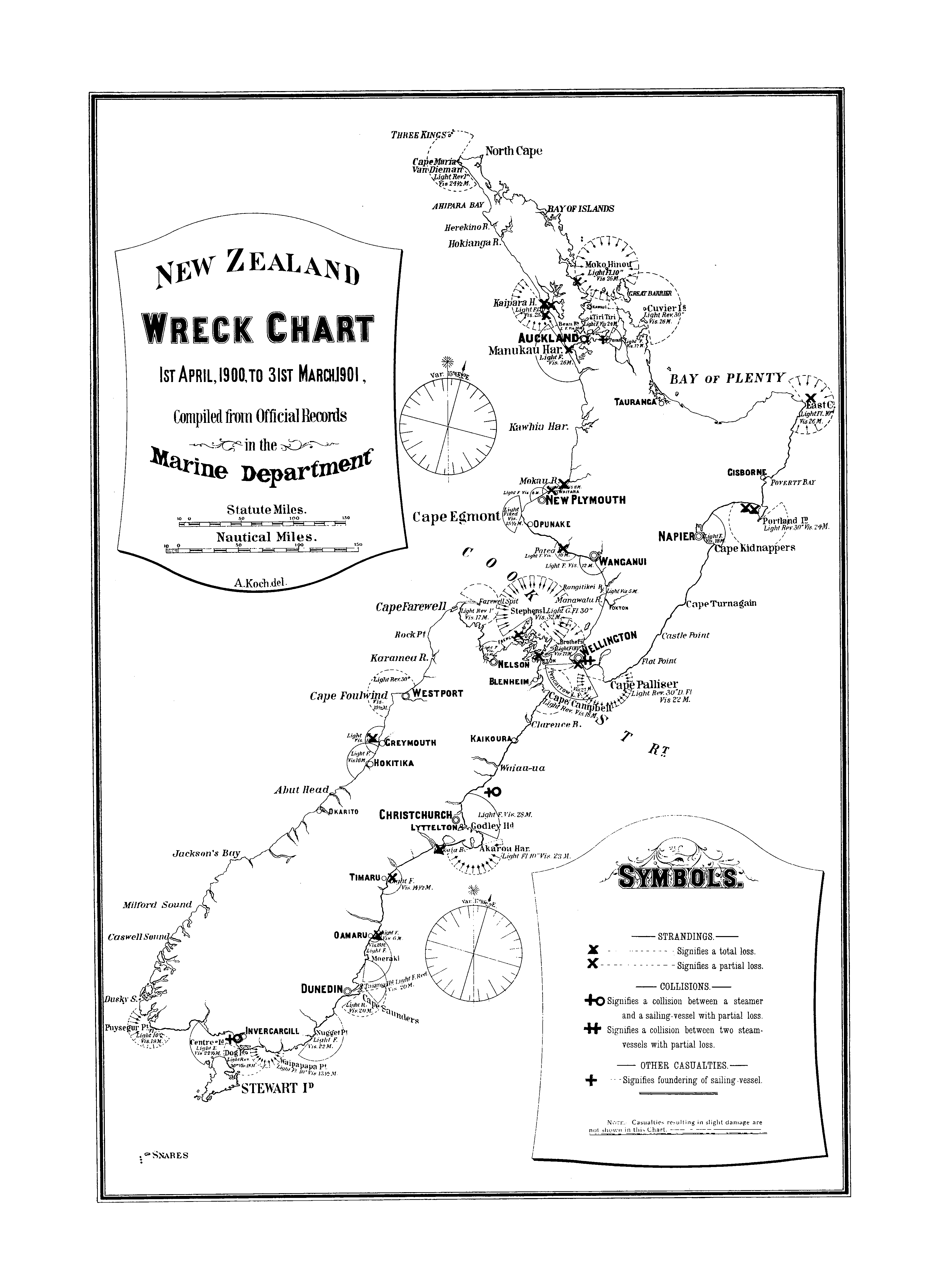 New Zealand Wreck Chart 1st April, 1900, to 31st March, 1901, Compiled from Official Records in the Marine Department